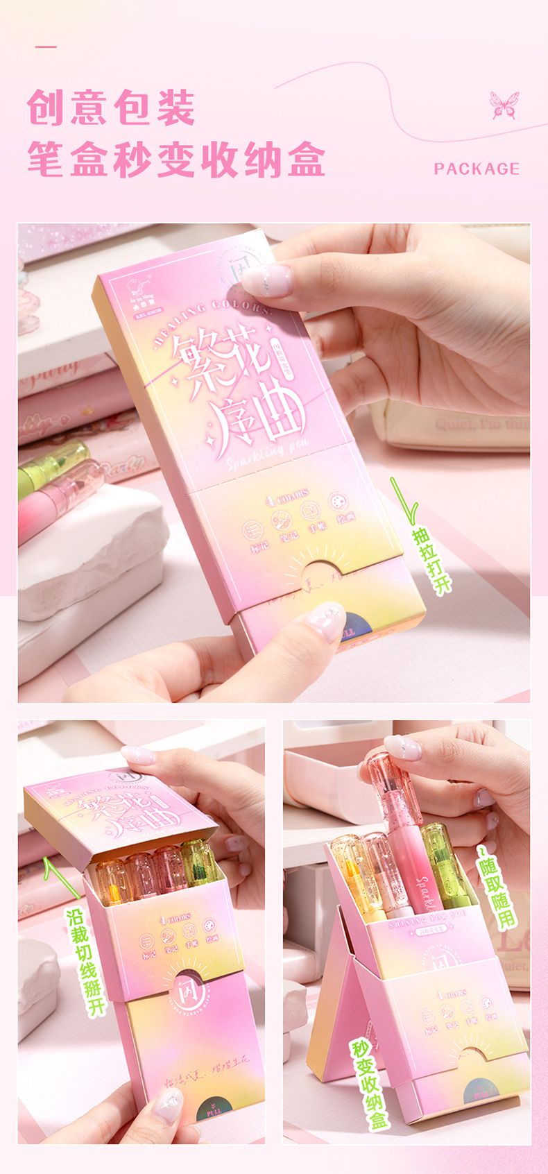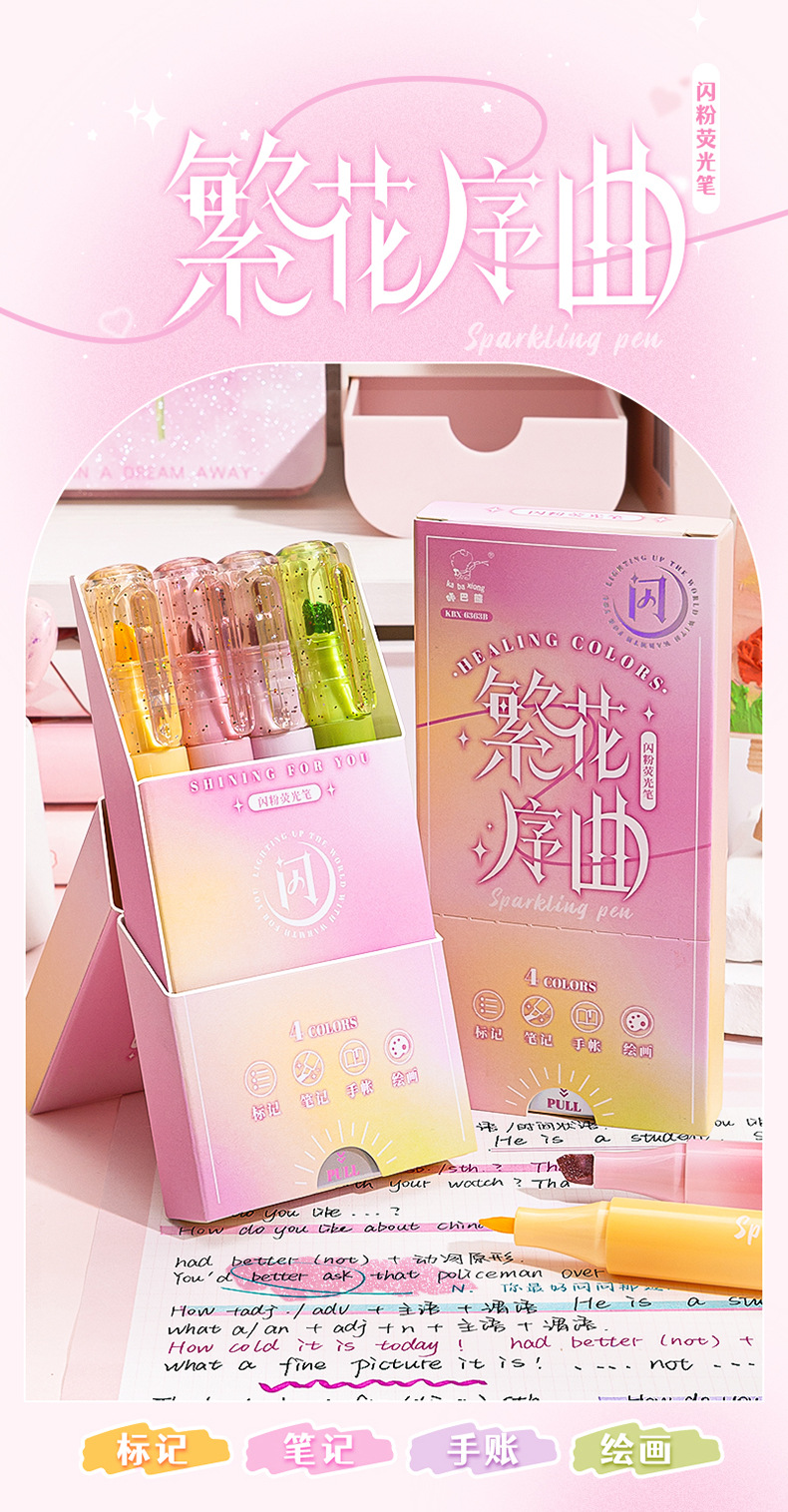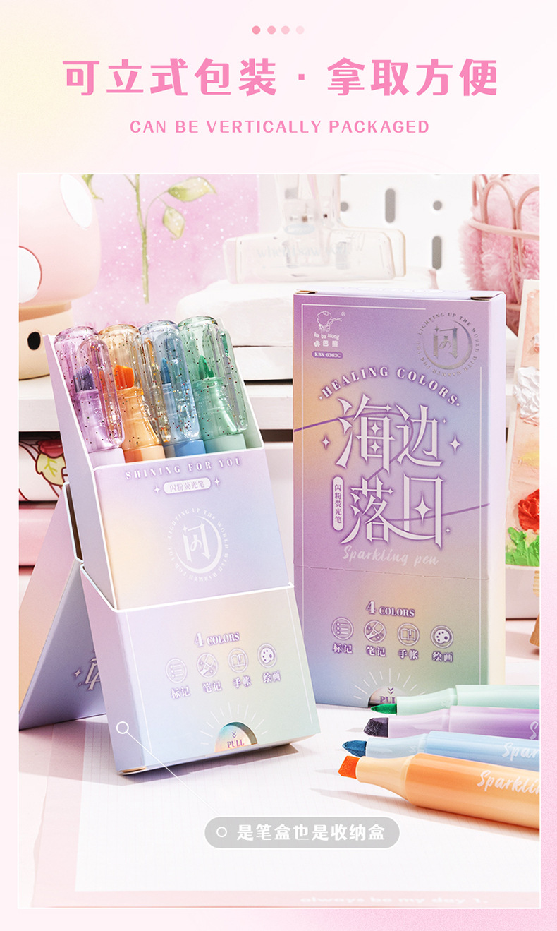 童益星 荧光笔 极光之舞 1盒4支装 混色(单位:盒)