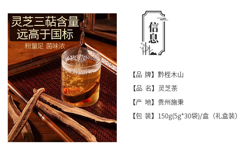 黔桎木山茶 灵芝茶 贵州扶贫 5g/袋*30 红色(单位:盒)