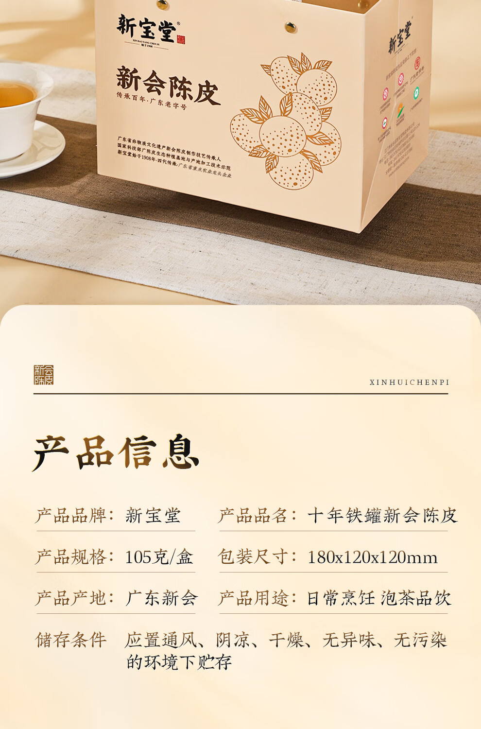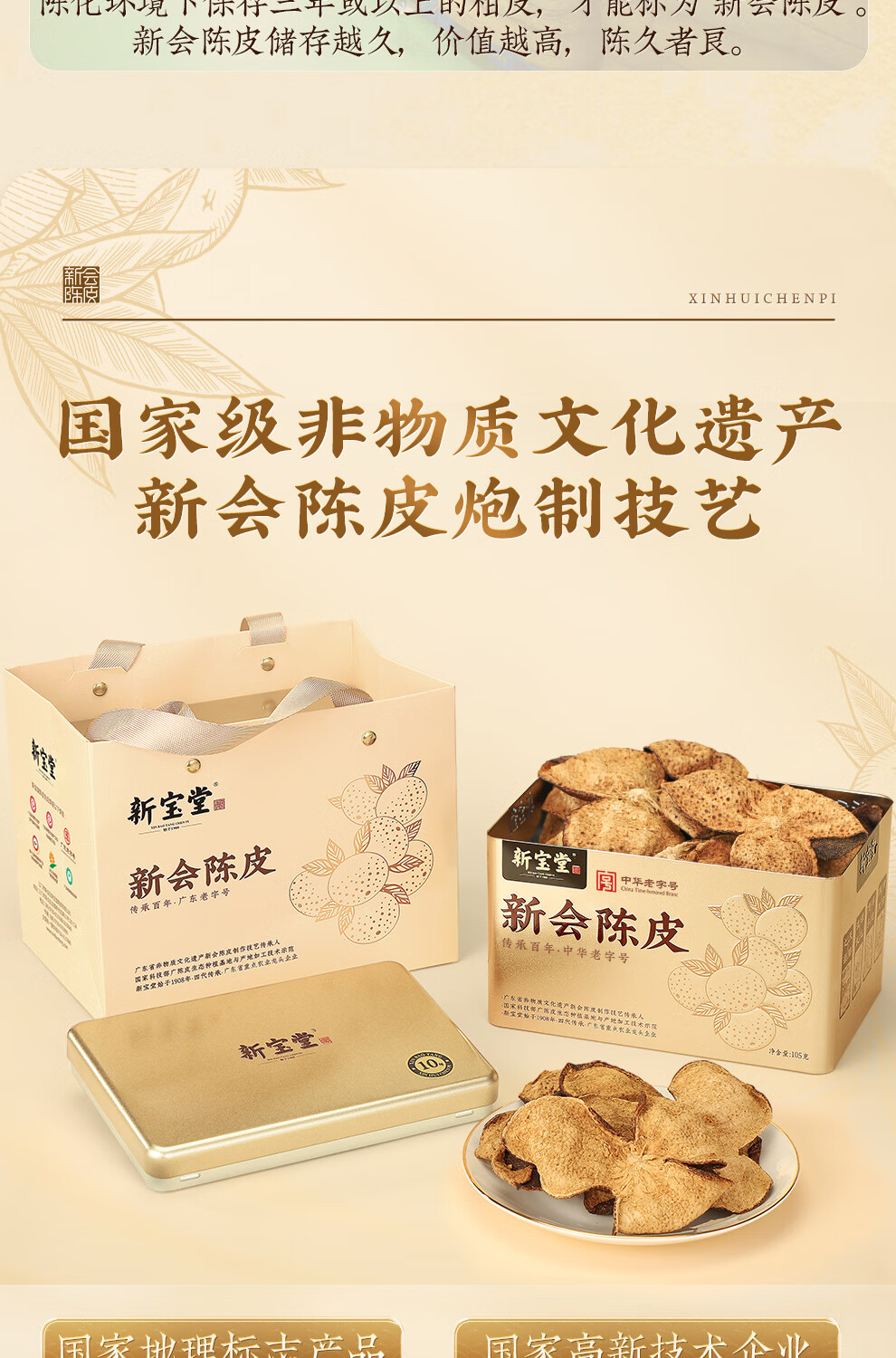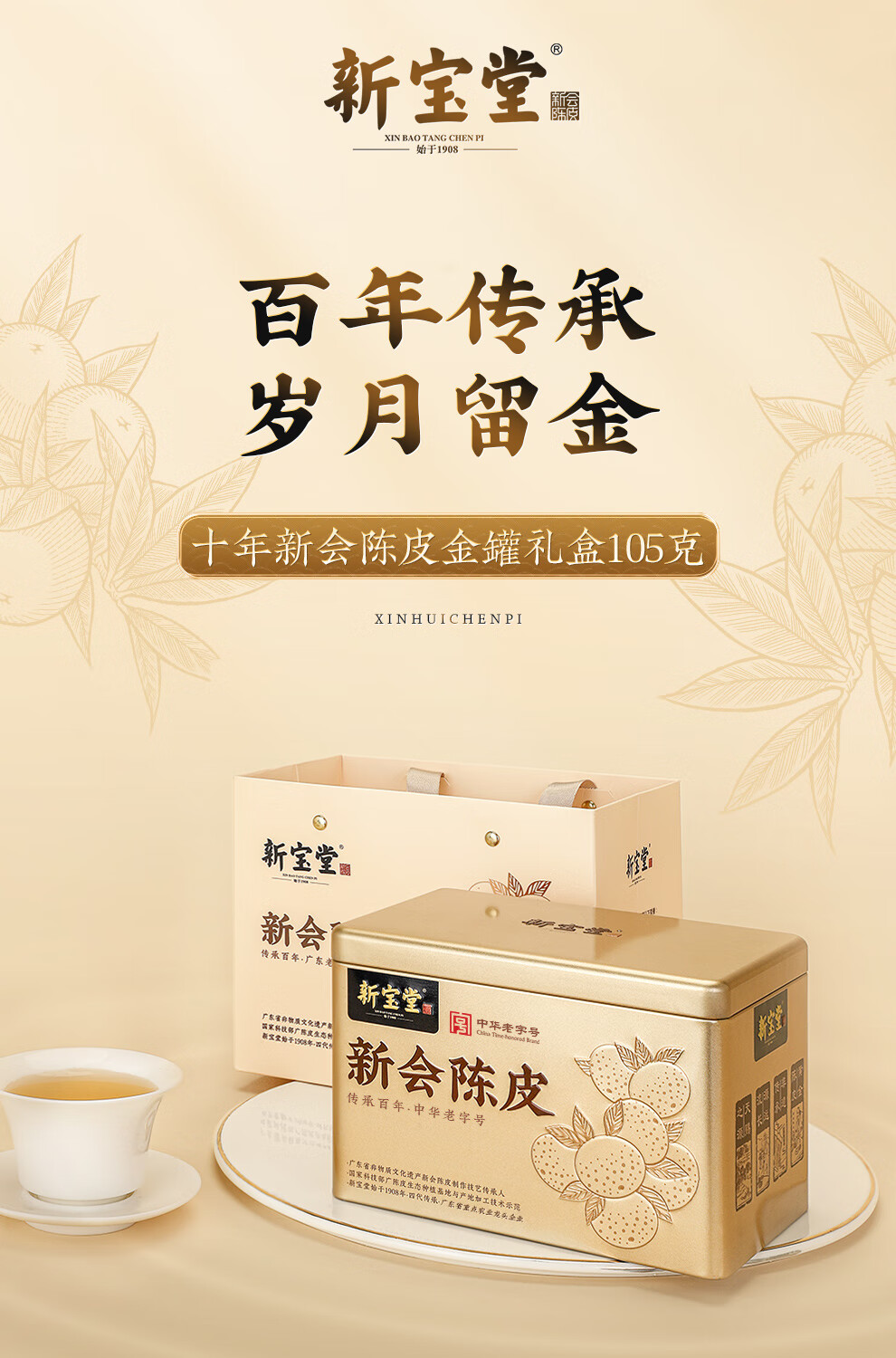 新宝堂 十年新会陈皮10年 养生茶金罐礼盒 105g 混色(单位:罐)