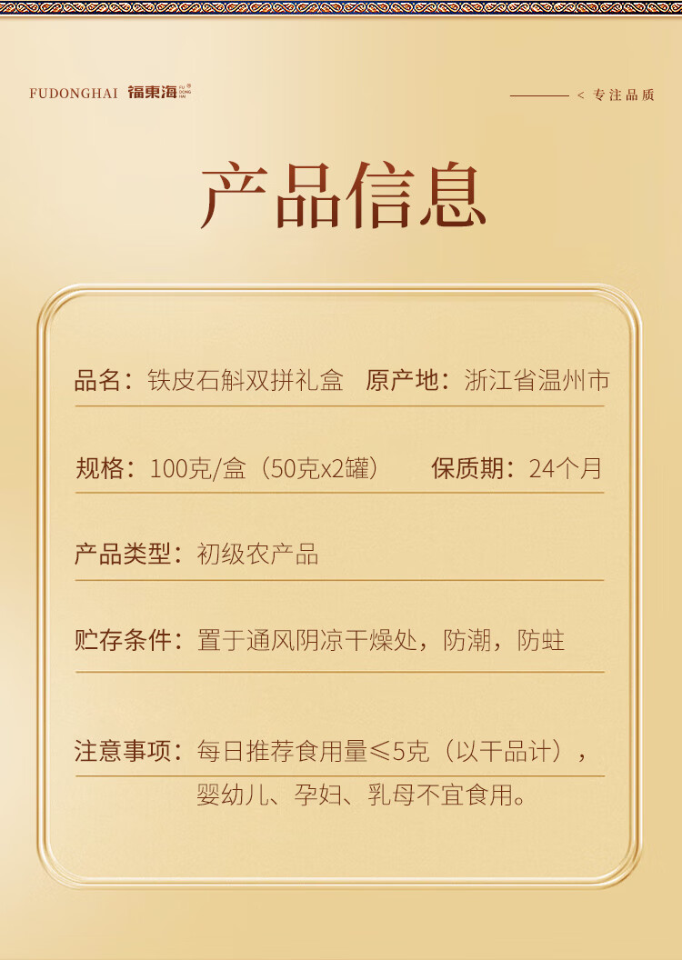 福东海(fudonghai) 初见系列-铁皮石斛 双拼礼盒 100g 红色(单位:盒)