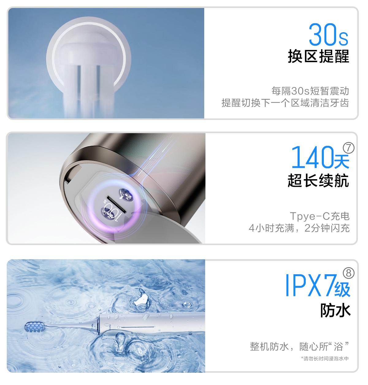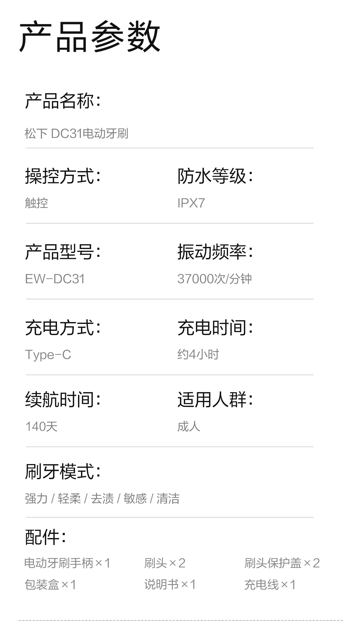 松下(Panasonic) 松下电动牙刷 EW-DC31-A405 IPX7防水 蓝色(单位:个)