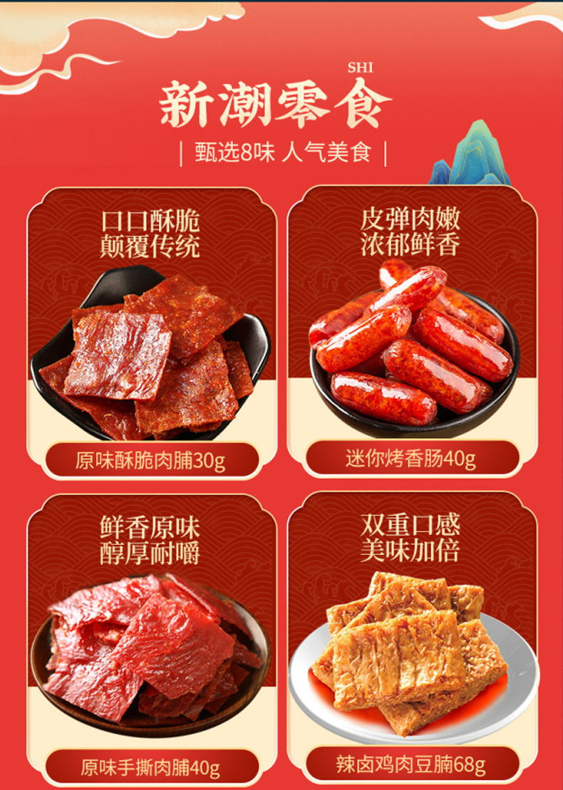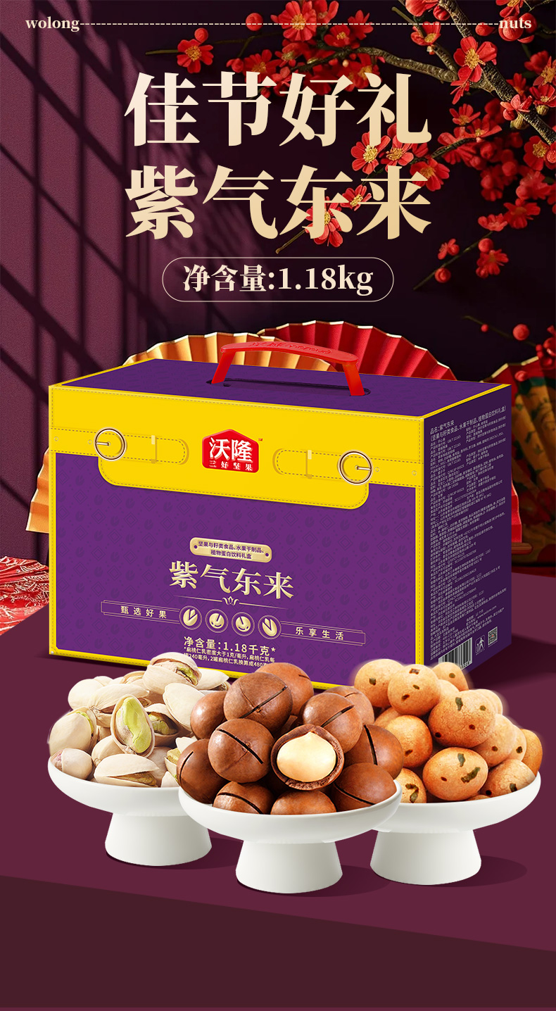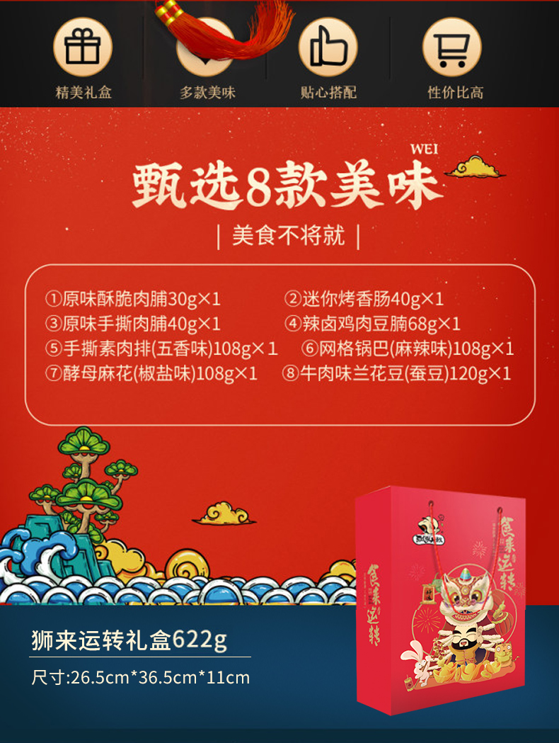 沃隆 /元朗/飘零大叔 新春礼盒干果+蔓越莓曲奇+猪肉脯休闲食品 1930g (单位:套)