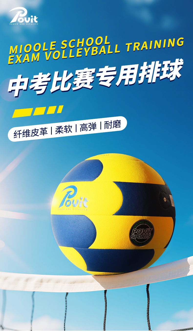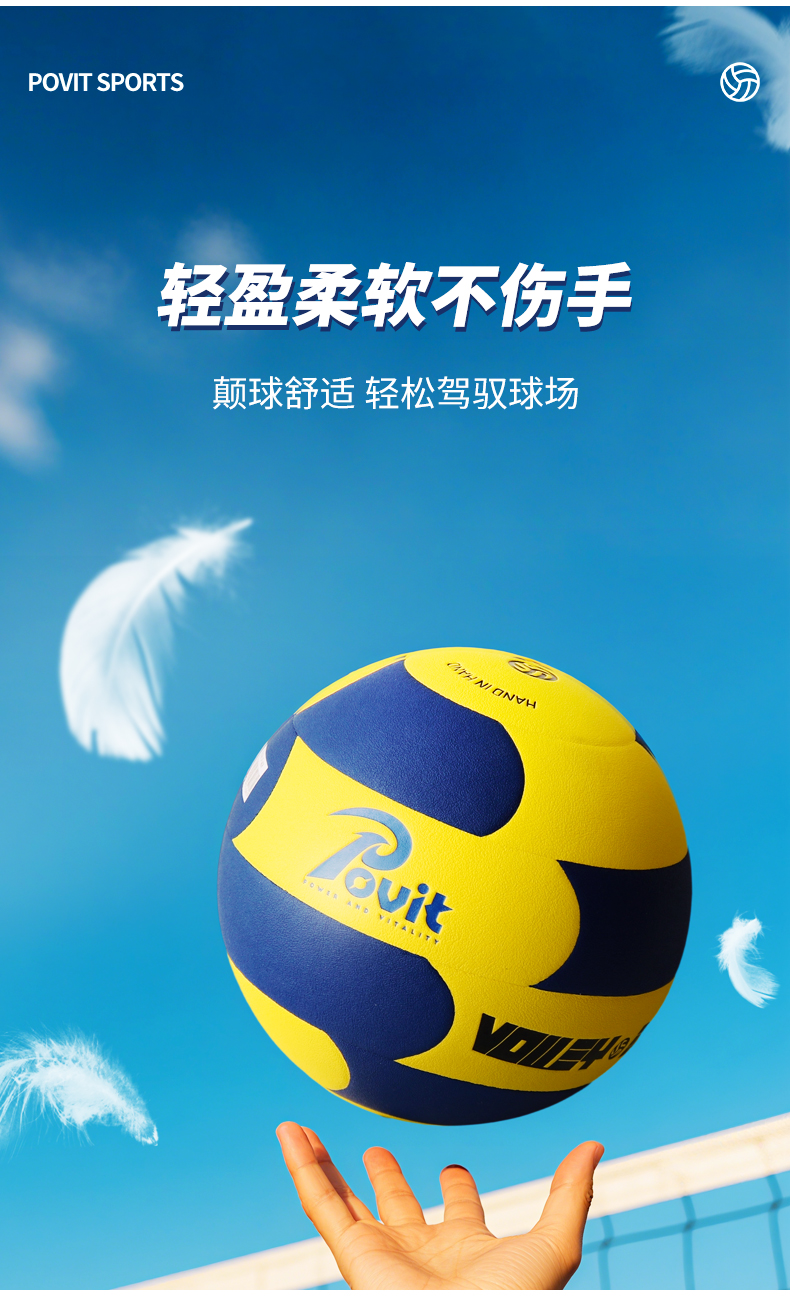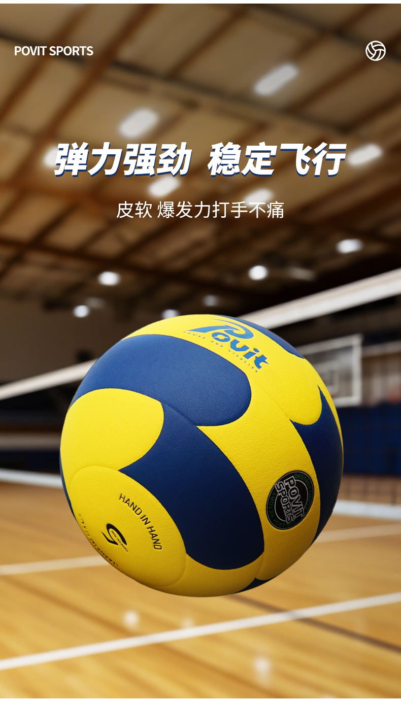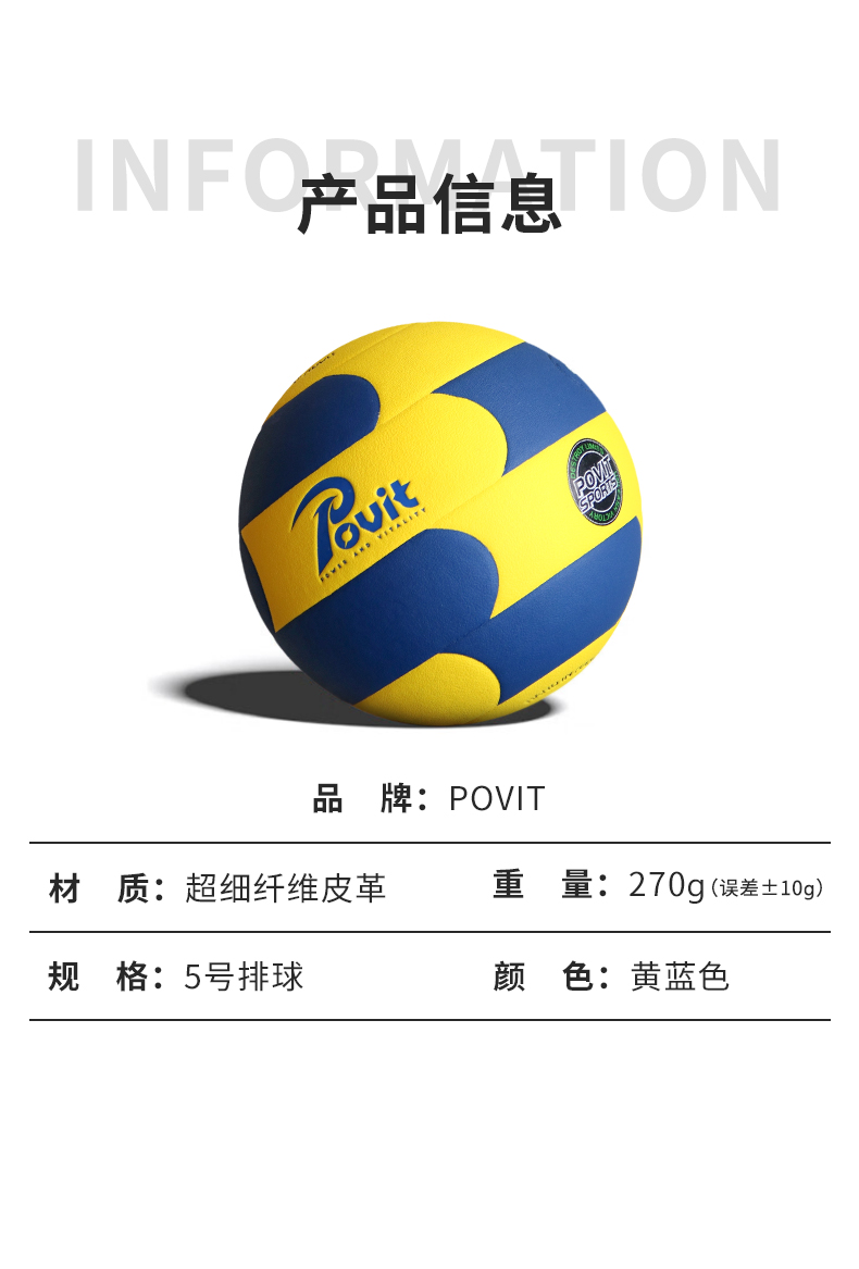 普为特(POVIT) 体育专用排球 P-408 270g 蓝黄色 标准5号(单位:个)