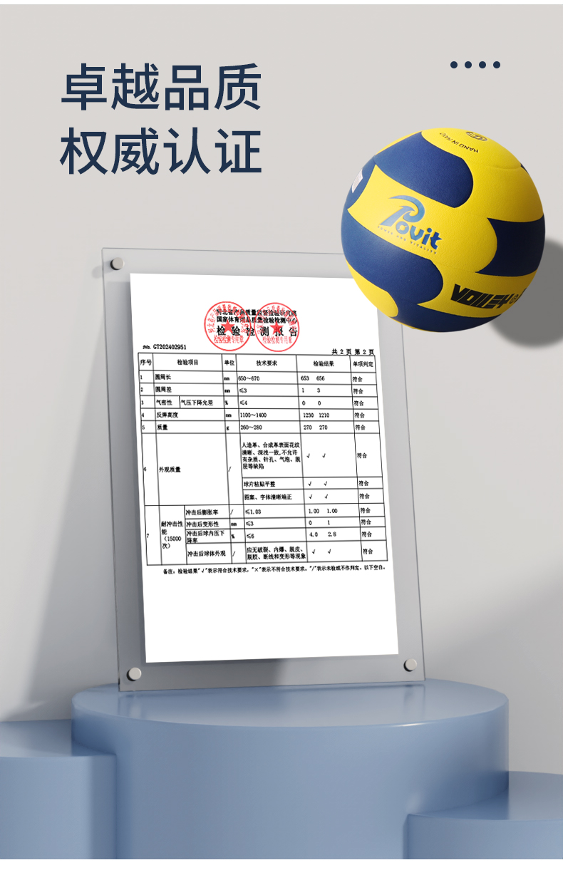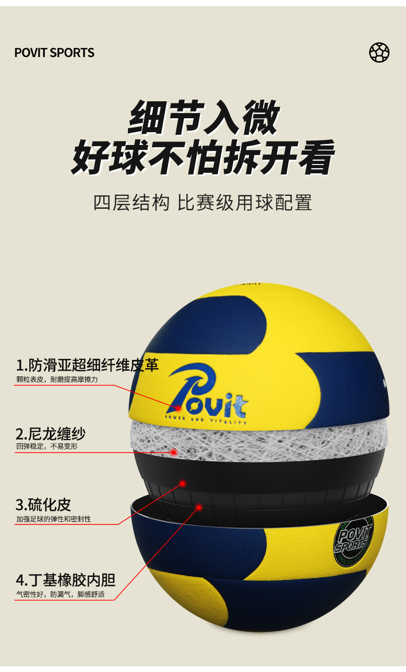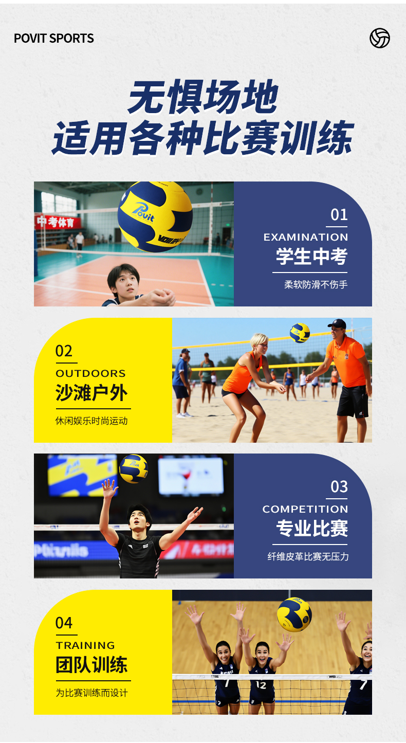普为特(POVIT) 体育专用排球 P-408 270g 蓝黄色 标准5号(单位:个)