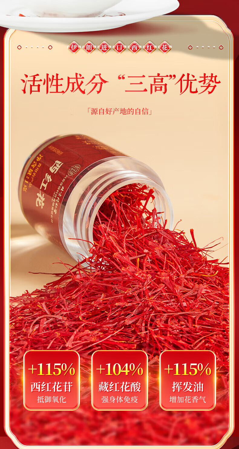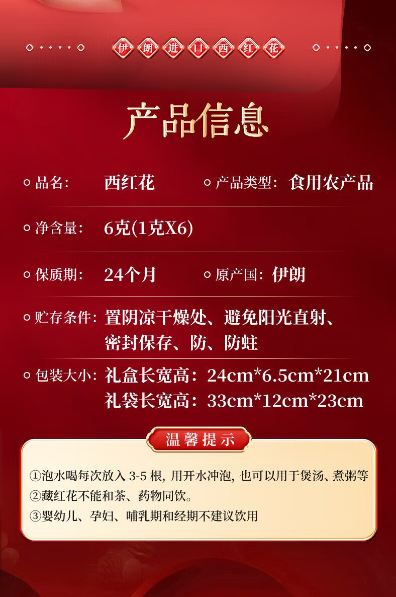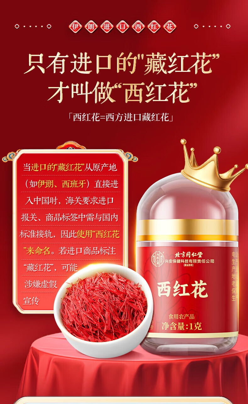 内廷上用 北京同仁堂西红花 特级进口礼盒 6g(1克×6) 红色(单位:盒)