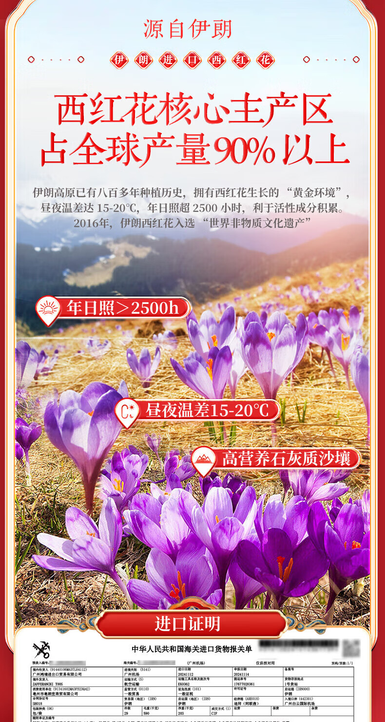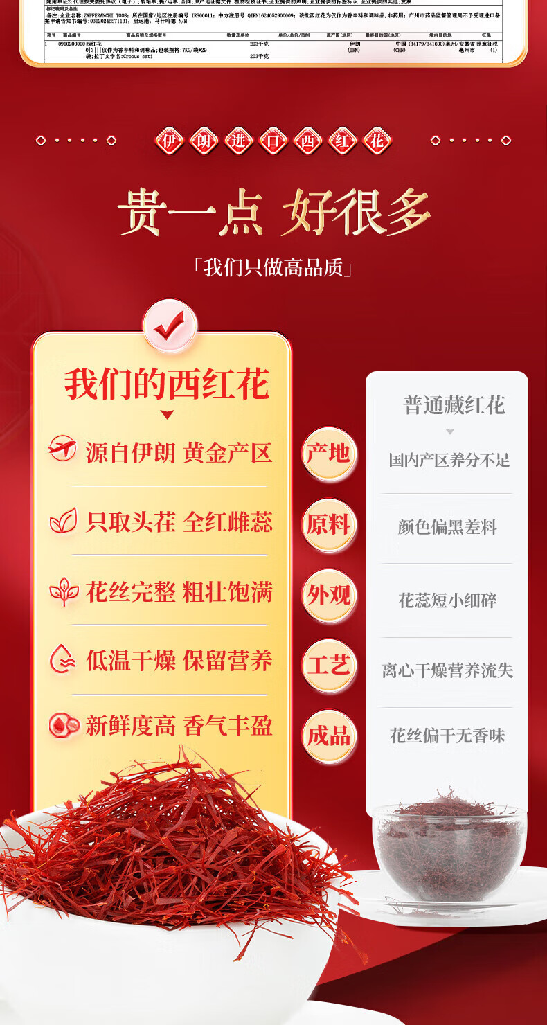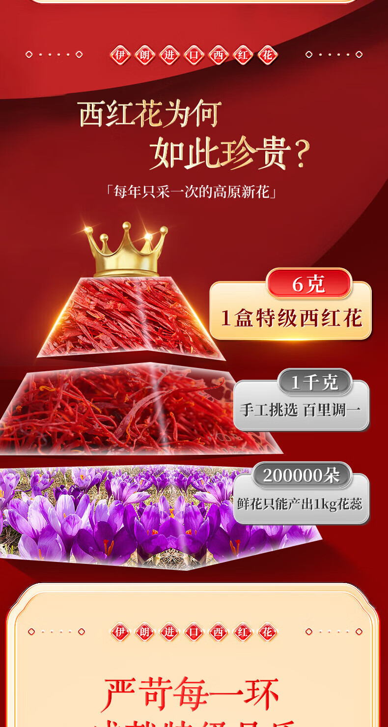 内廷上用 北京同仁堂西红花 特级进口礼盒 6g(1克×6) 红色(单位:盒)