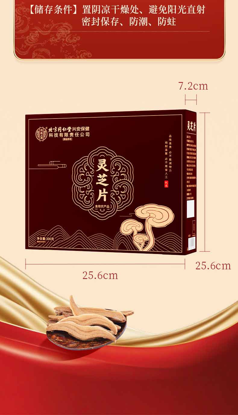 同仁堂(TRT) 内廷上用灵芝片 长白山整朵切片 300克 咖色(单位:盒)