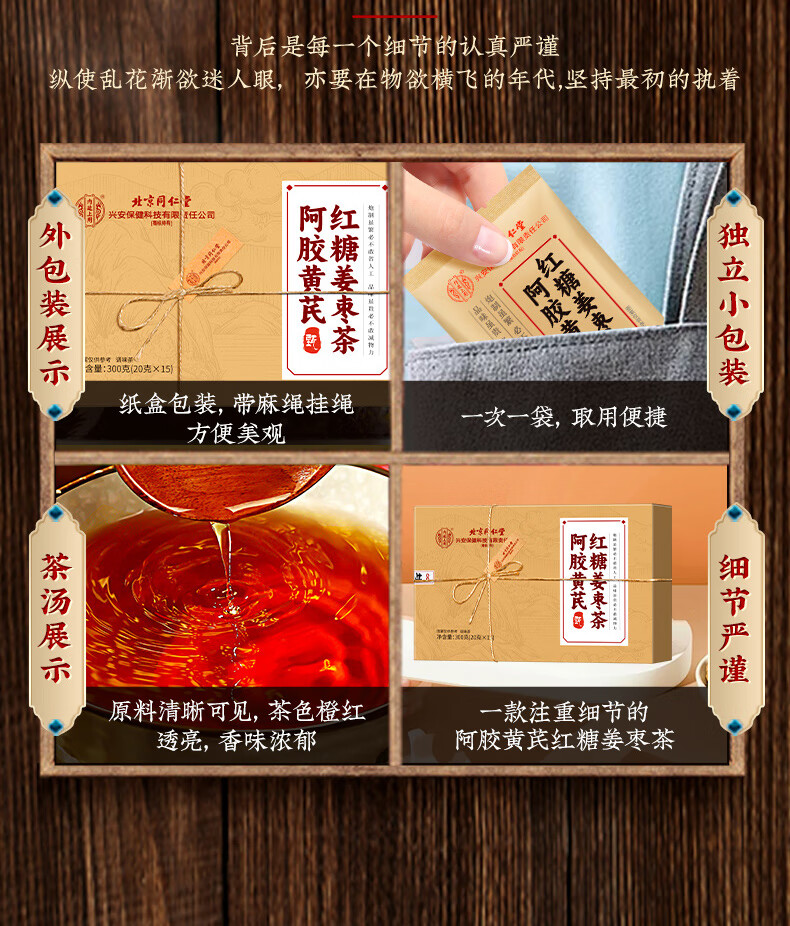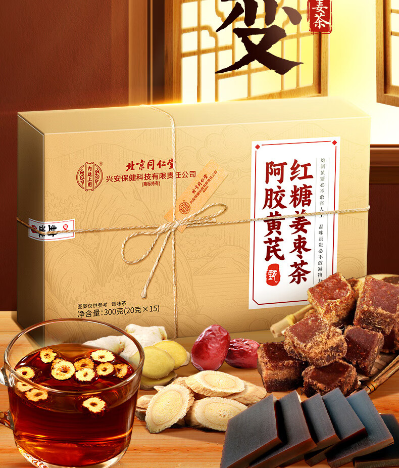 同仁堂(TRT) 内廷上用阿胶黄芪红糖姜枣 气血双补茶 300(20g*15) 红色(单位:盒)