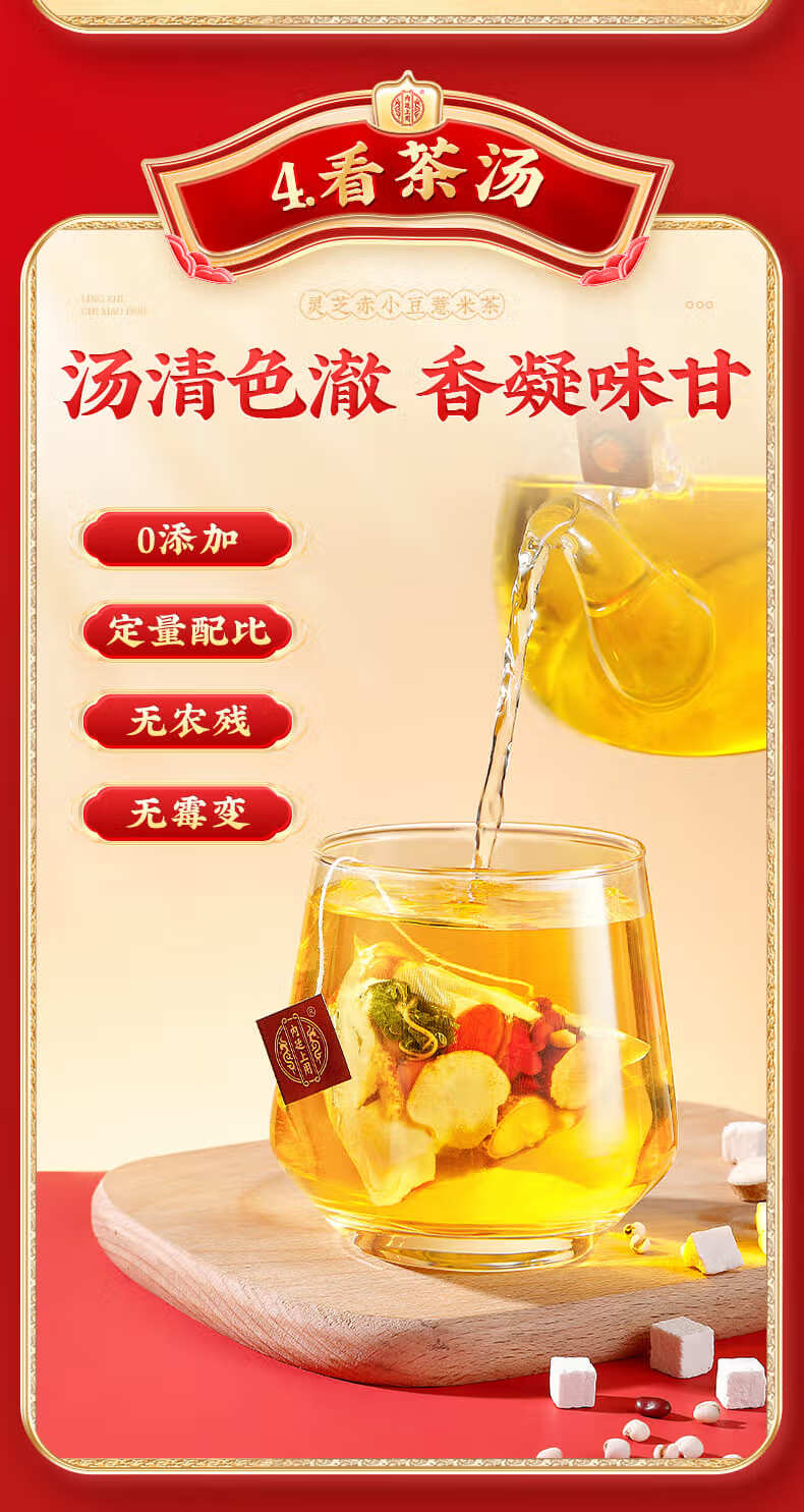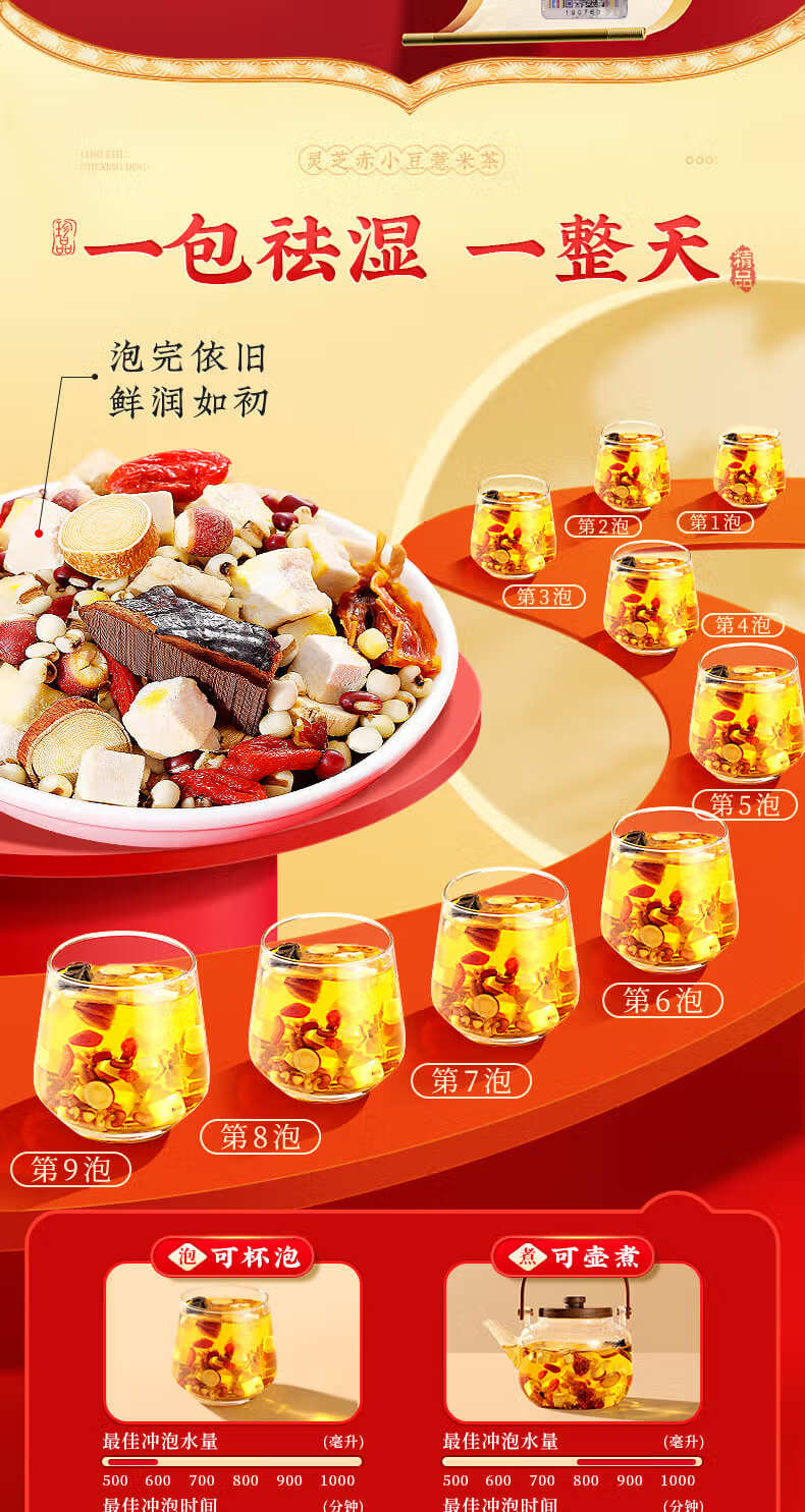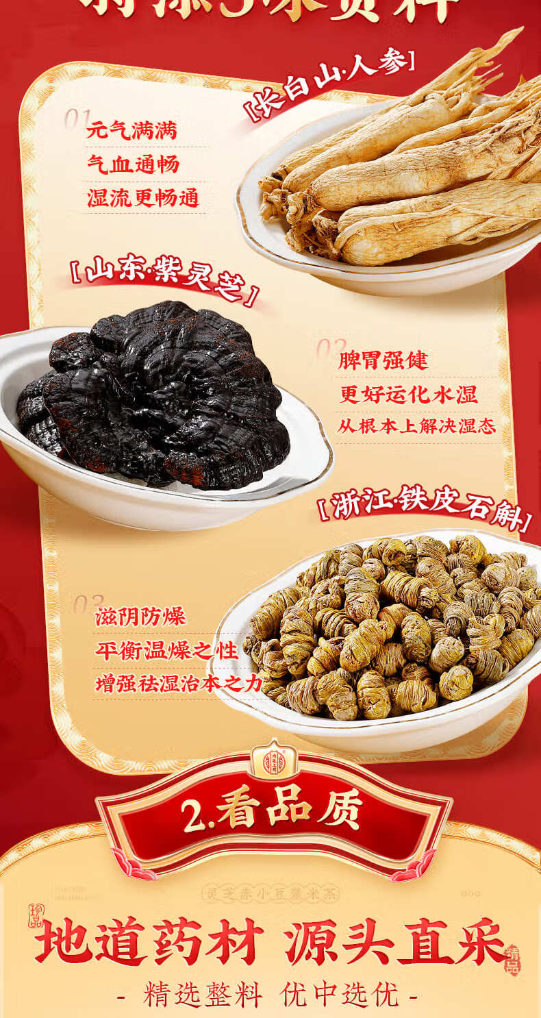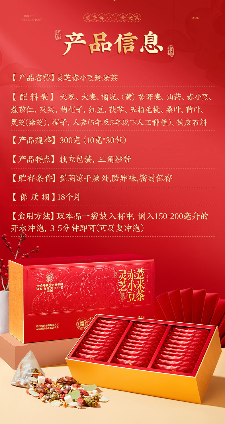 同仁堂(TRT) 内廷上用灵芝赤小豆薏米茶 改良专方 专攻湿气 300g(10g*30) 红色(单位:盒)