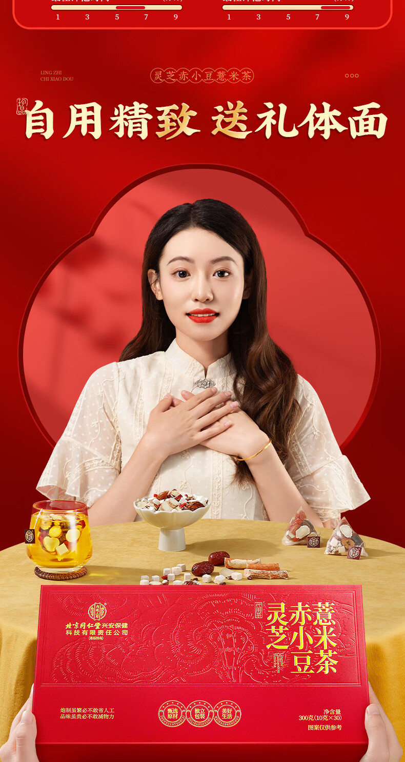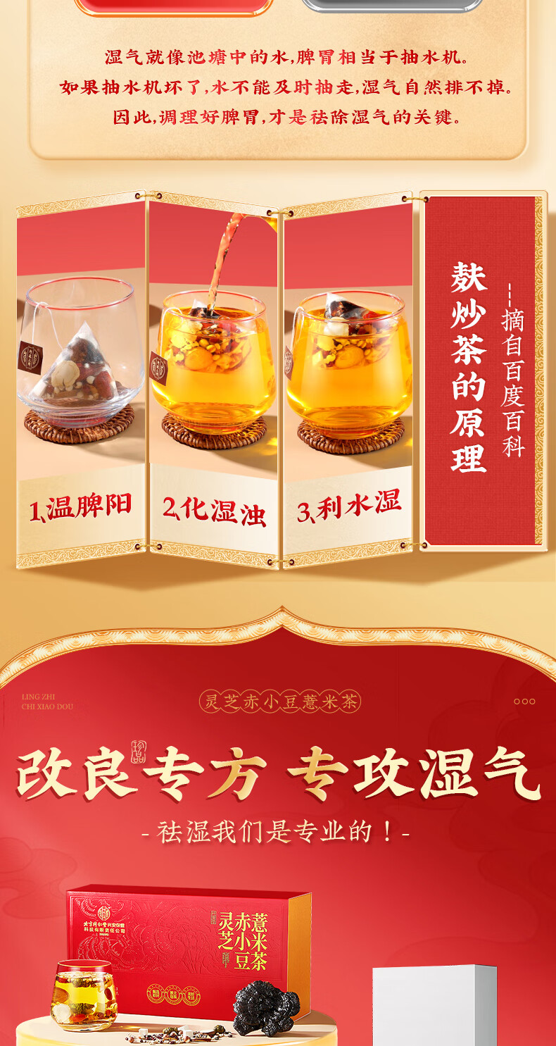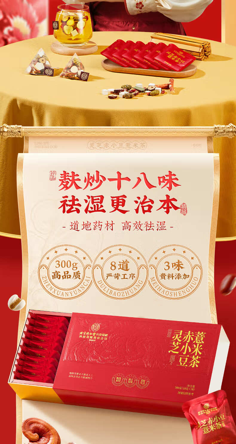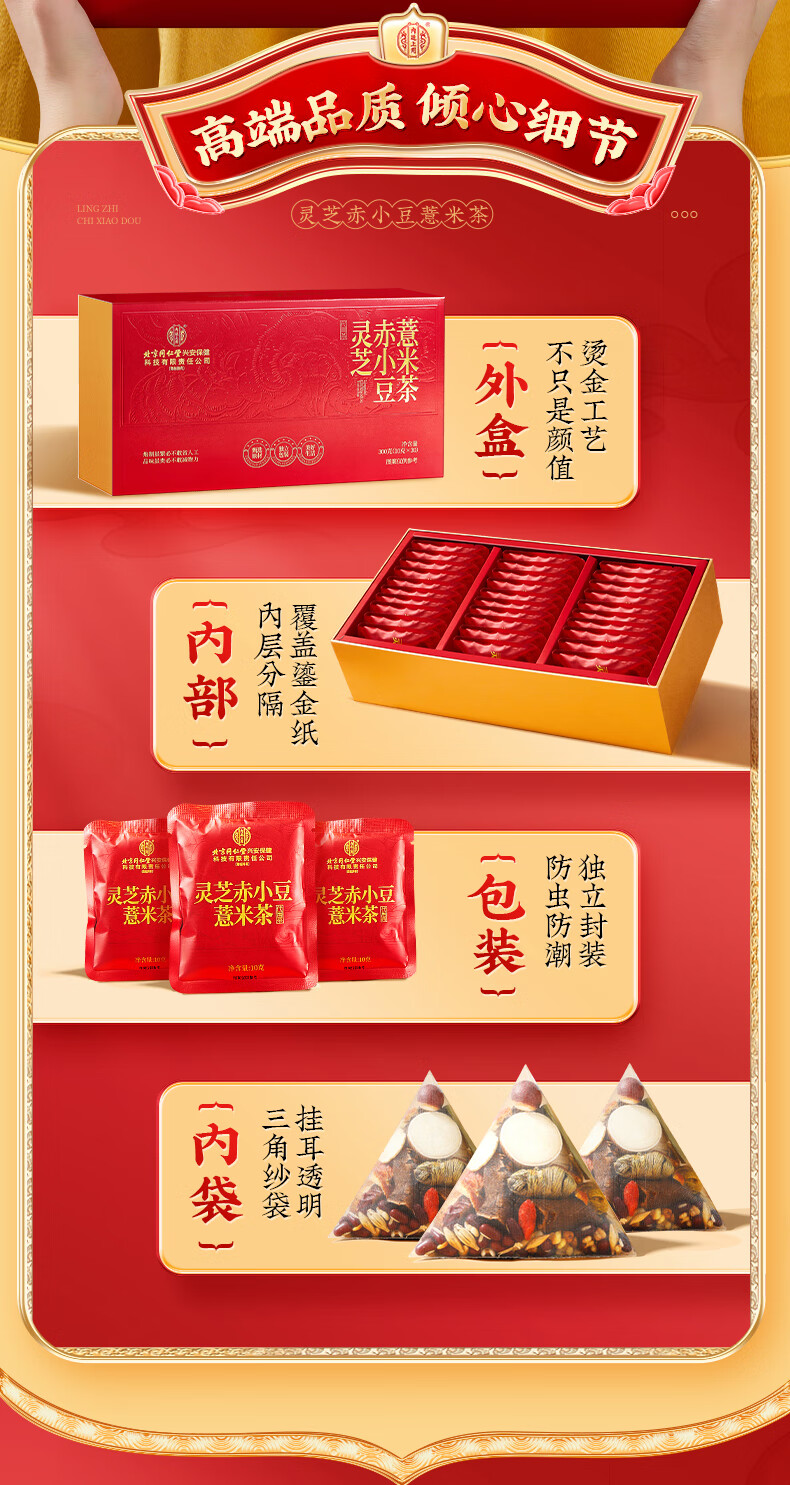 同仁堂(TRT) 内廷上用灵芝赤小豆薏米茶 改良专方 专攻湿气 300g(10g*30) 红色(单位:盒)