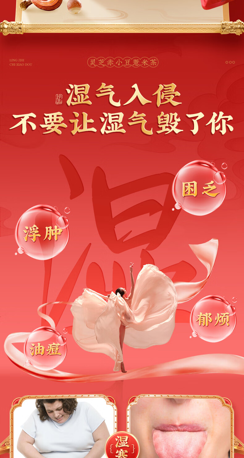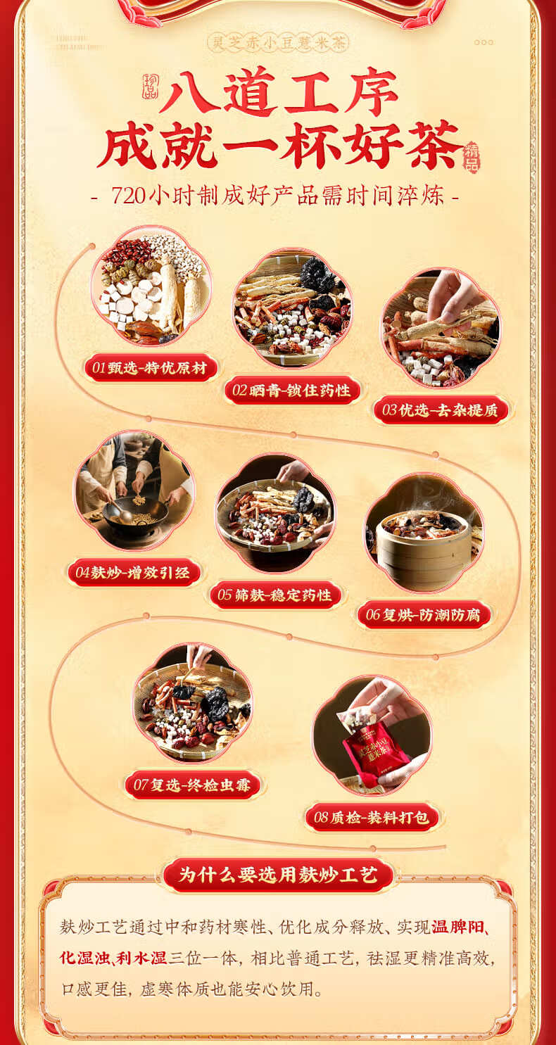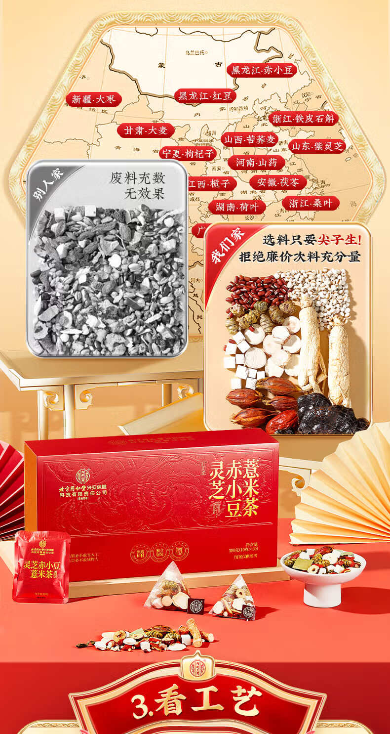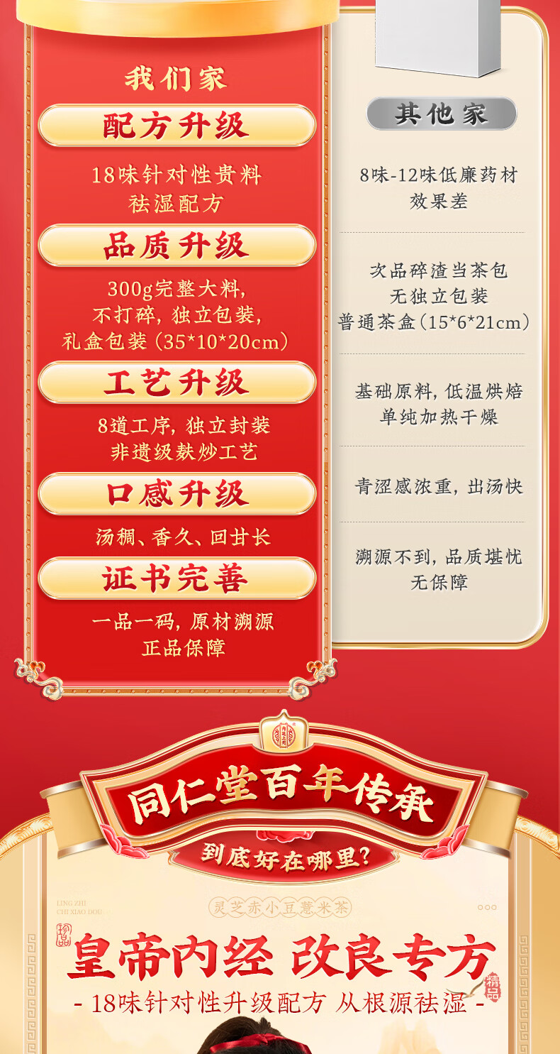 同仁堂(TRT) 内廷上用灵芝赤小豆薏米茶 改良专方 专攻湿气 300g(10g*30) 红色(单位:盒)