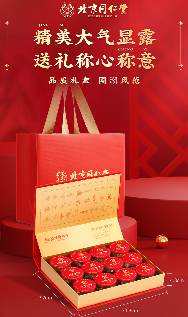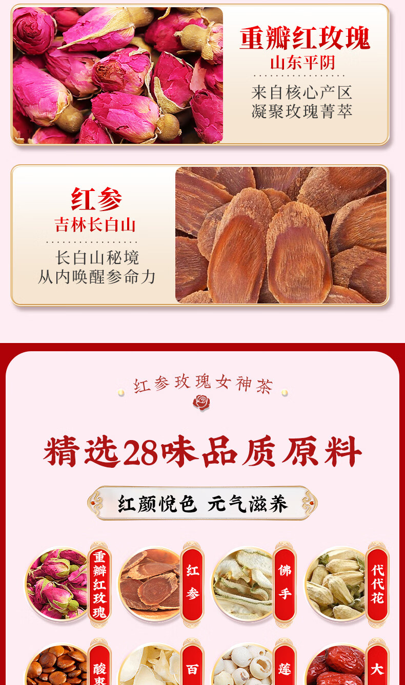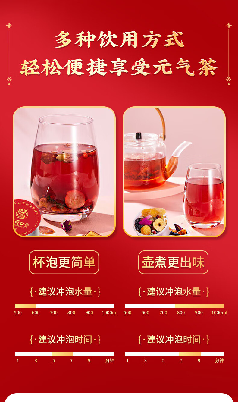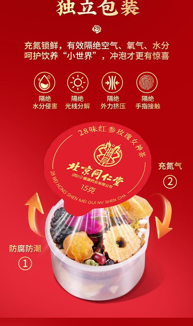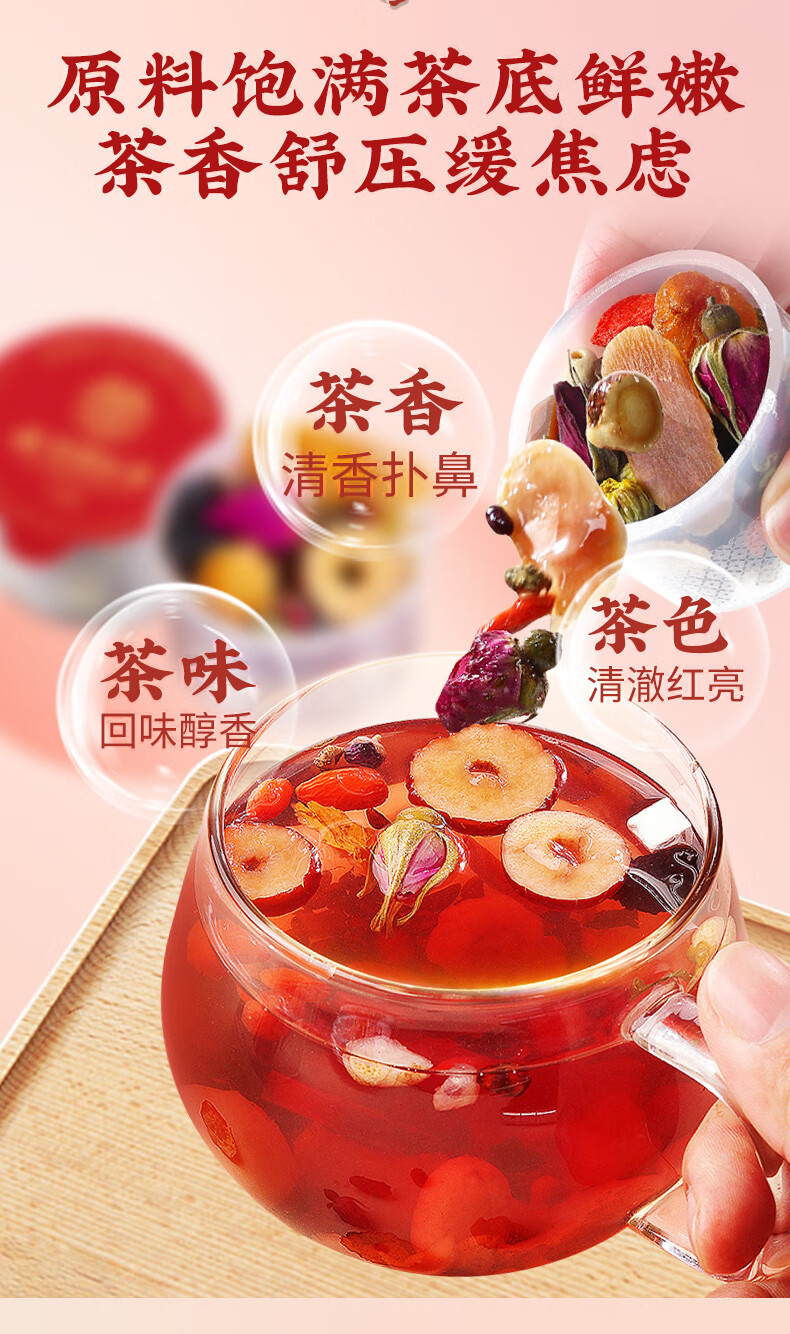 同仁堂(TRT) 朕皇28味红参玫瑰女神茶 小罐茶 180g(15g*12罐) 红色(单位:盒)