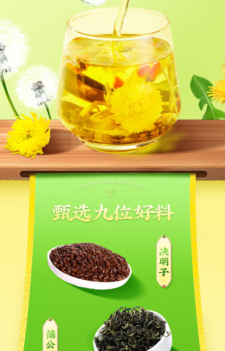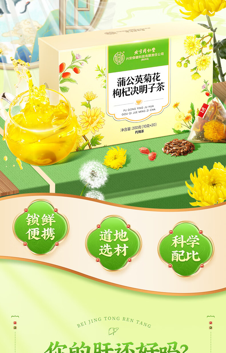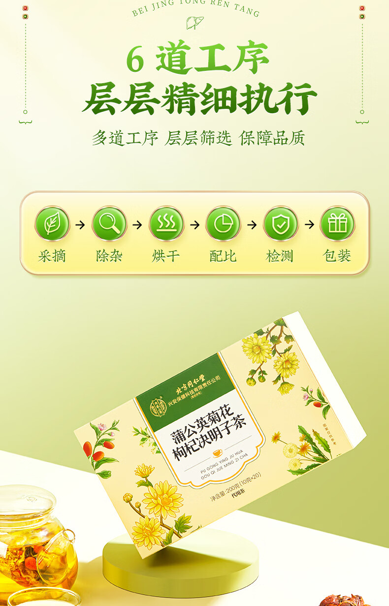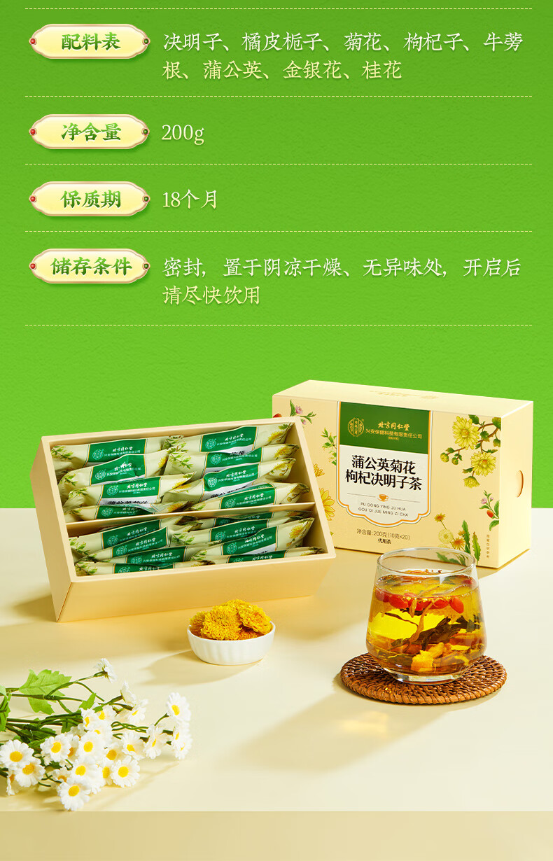 内廷上用 北京同仁堂蒲公英菊花枸杞决明子茶 熬夜养生茶 200g(10克×20) 黄色(单位:盒)