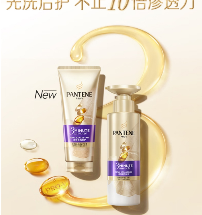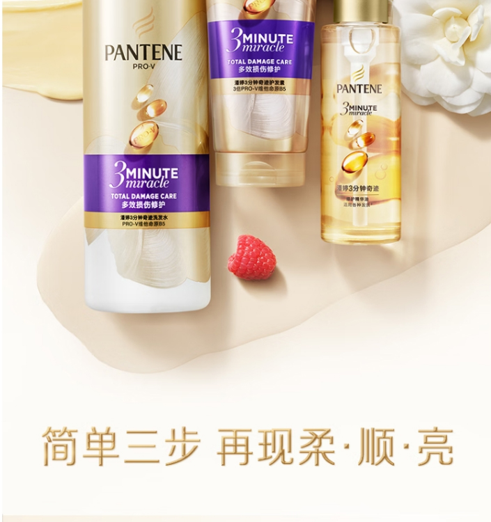 潘婷(PANTENE) 3分钟 洗发水 洗+护 (300g+180ml) 香槟黄(单位:套)