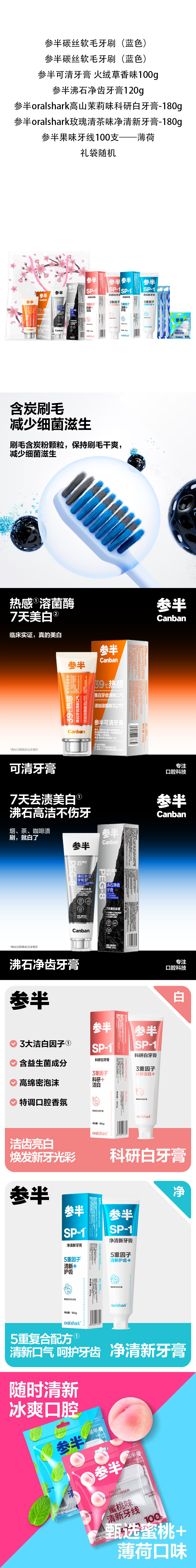 参半(NYSCPS) 580g+牙刷*2+1包 清洁口腔礼包 7件 混色(单位:套)