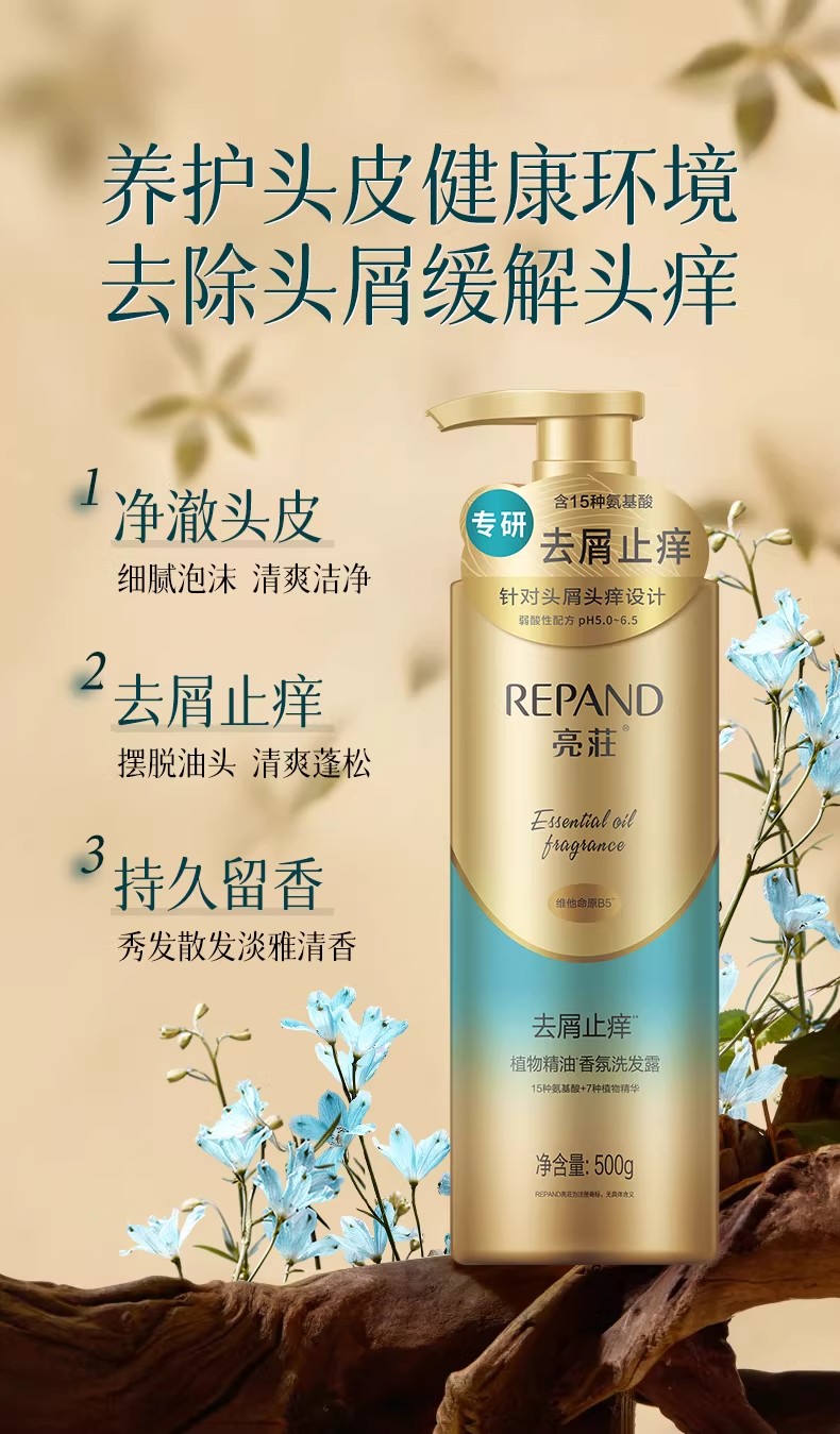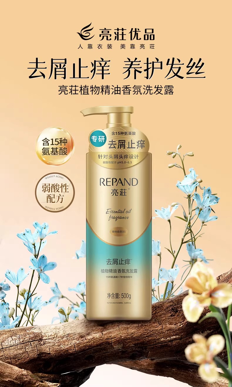 亮荘 植物精油香氛洗发露(去屑止痒) 氨基酸控油蓬松 500g 奶茶杏(单位:瓶)