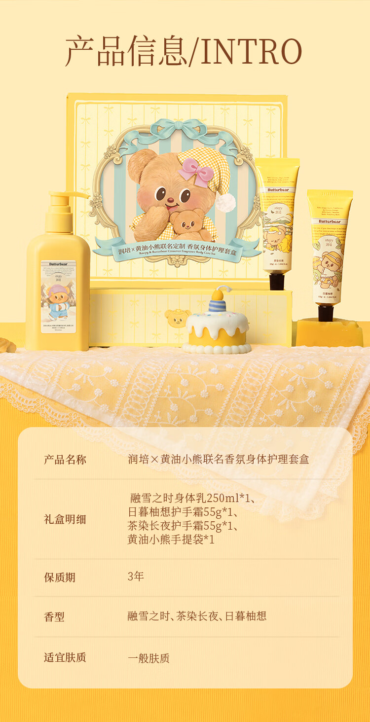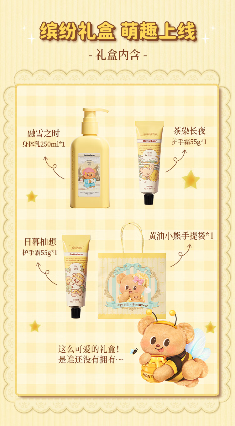 ROOPY 润培保湿滋润护手霜套盒 黄油小熊 250ml+55g+55g 金色(单位:盒)