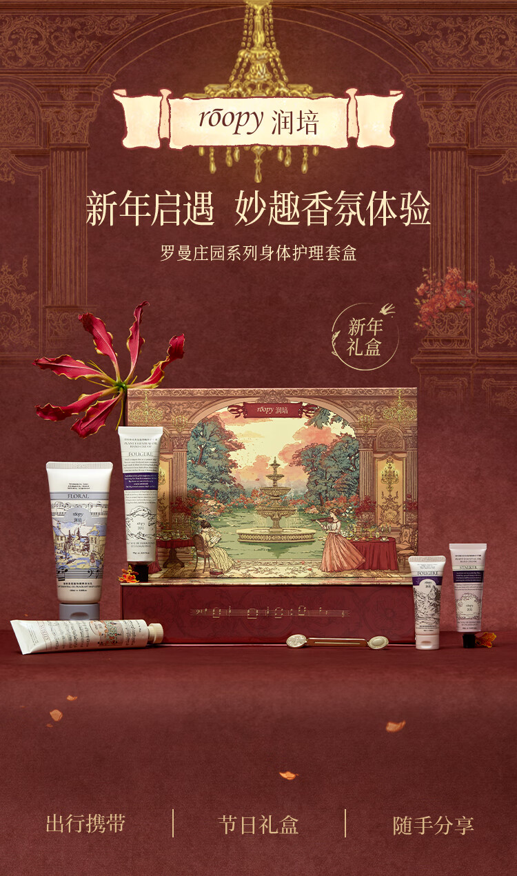 ROOPY 润培 身体护手霜护理套盒 罗曼庄园系列 150ml+75g*2+25g+25ml 莓果色(单位:盒)
