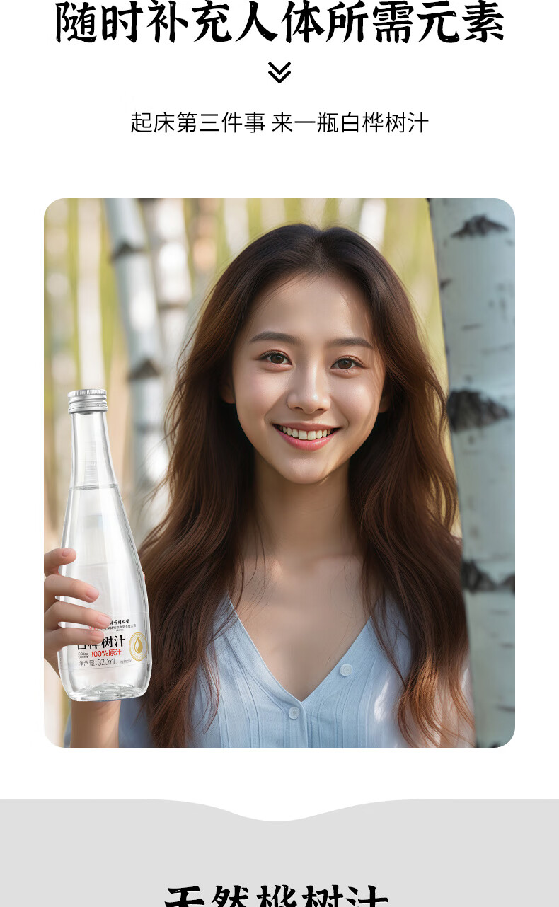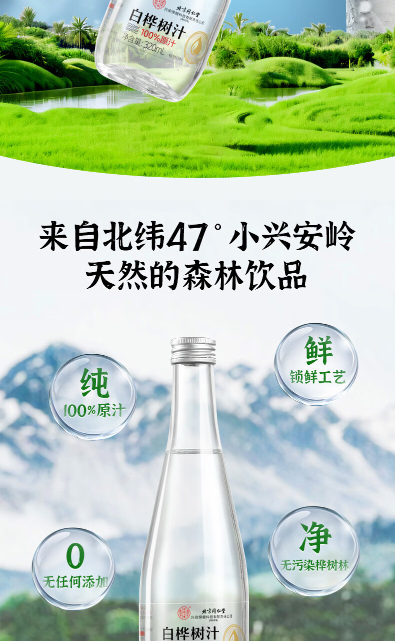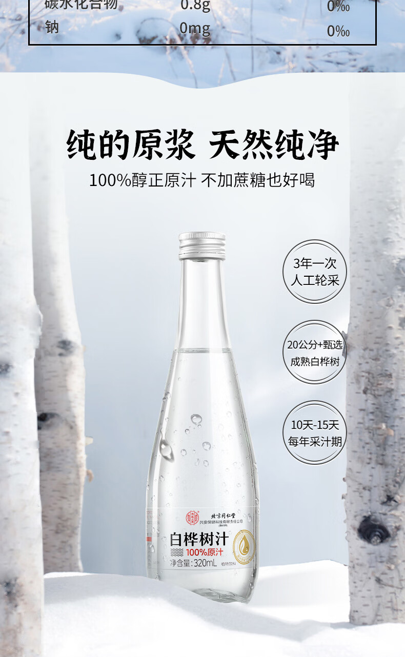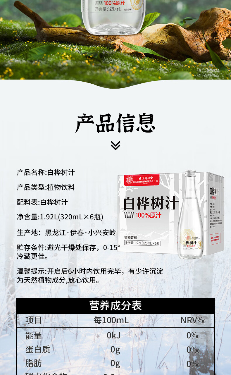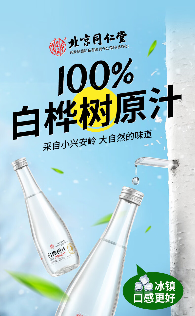 内廷上用 北京同仁堂白桦树汁 植物饮品 320ml*6瓶 白色(单位:箱)