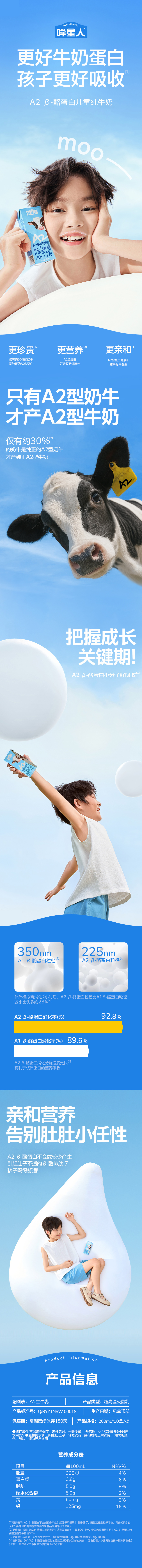 认养一头牛 柳叶哞星人A2儿童纯奶 110102001503 200ml*10盒 蓝色(单位:提)