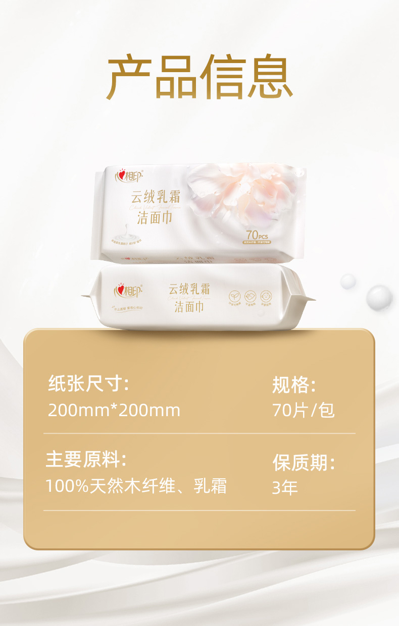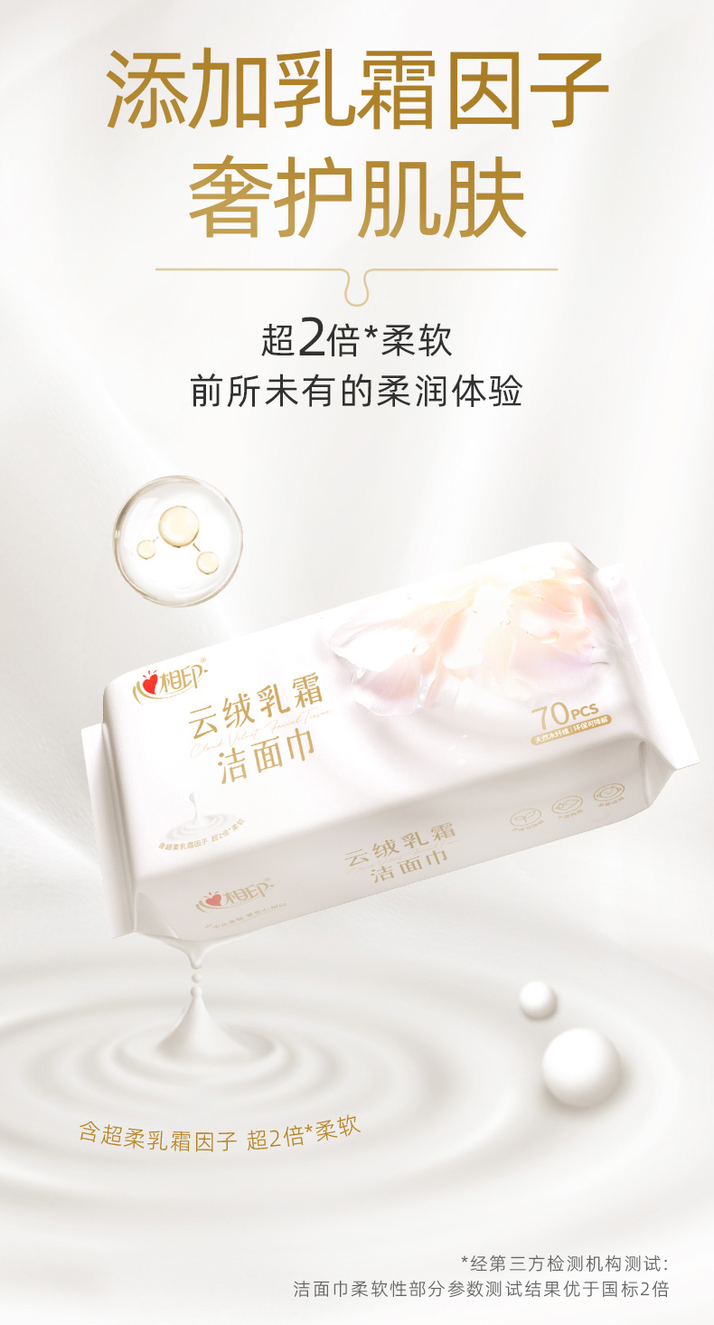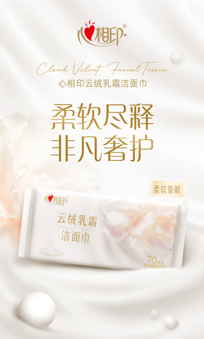 心相印 棉柔系列云绒乳霜柔巾70片装 XCE070 1包 白色(单位:包)