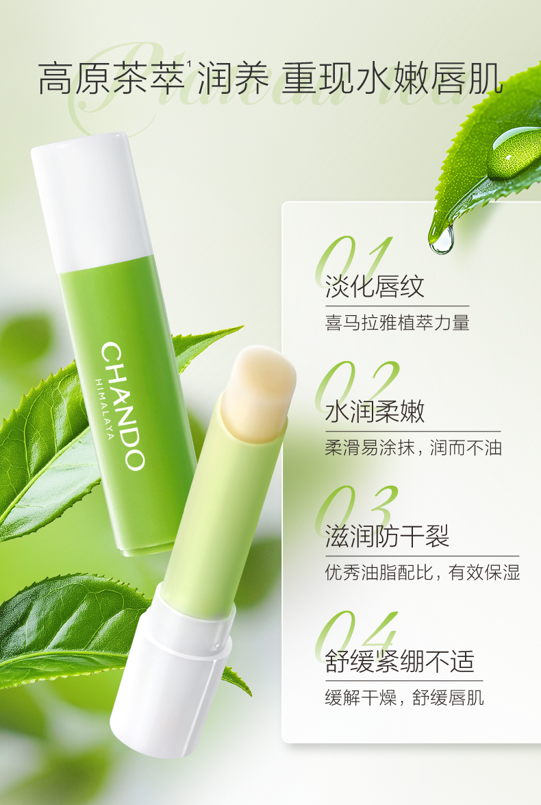 自然堂(CHANDO)茶萃润纹小绿管护唇膏3g(单位:只) 松石绿