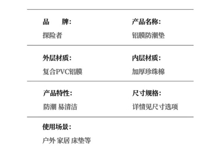 探险者(TAN XIAN ZHE) 防潮垫 TXZ-FCD 240*240cm 银色(单位:张)