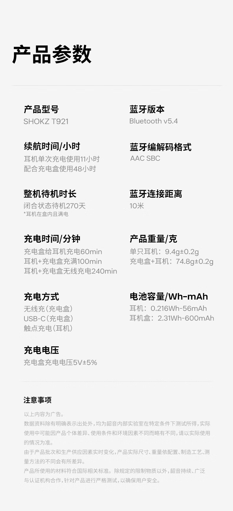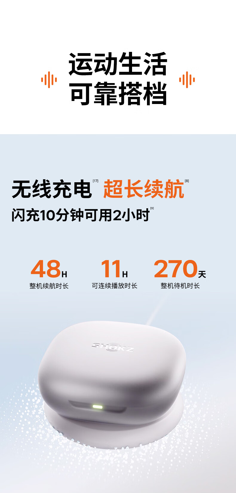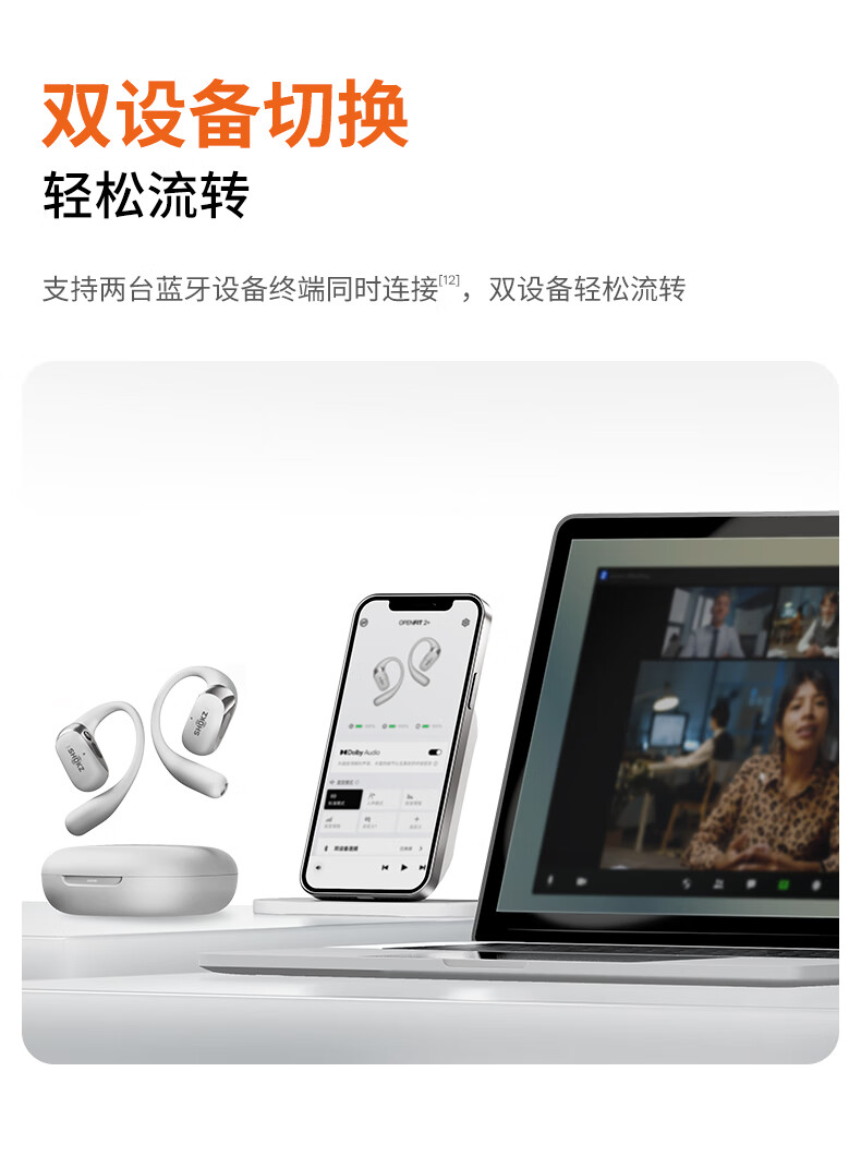 韶音(SHOKZ) 开放式蓝牙耳机 T921 单耳9.4g续航10小时 岩黑(单位:副)