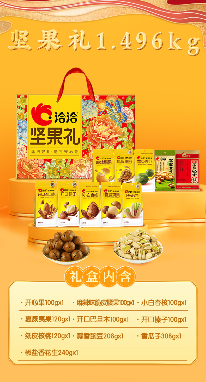 洽洽 坚果礼盒 吉食承福 1496g 黄色(单位:盒)