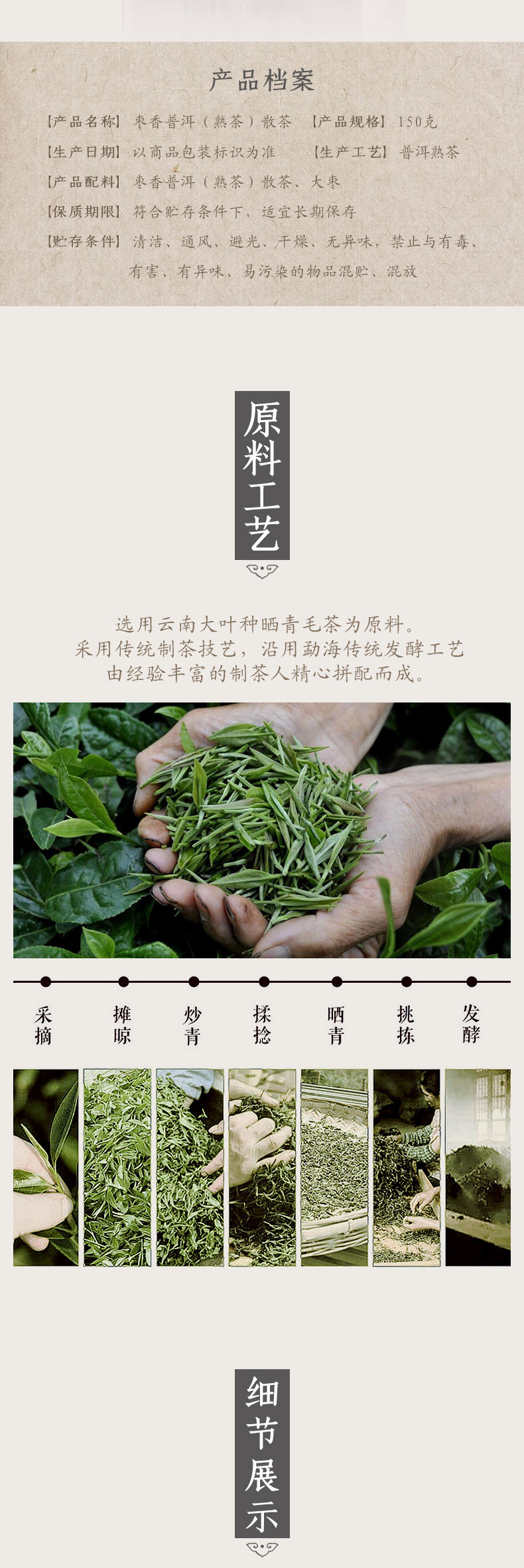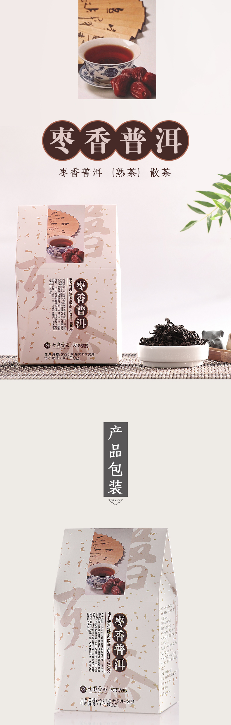 七彩云南 普洱茶 枣香普洱 150g 象牙色(单位:袋)