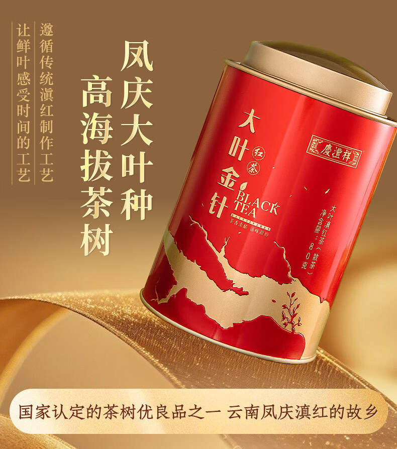 七彩云南 红茶 大叶金针 80g 红色(单位:桶)