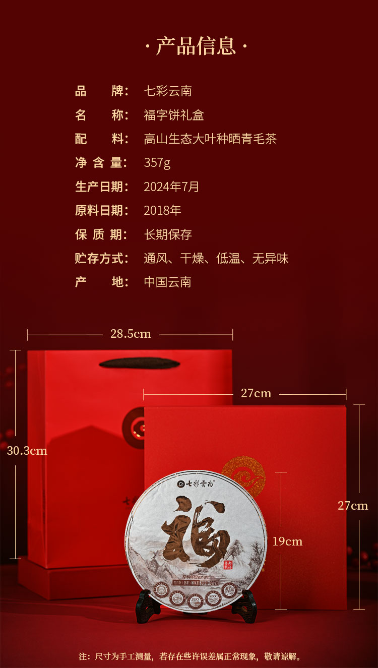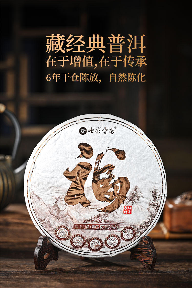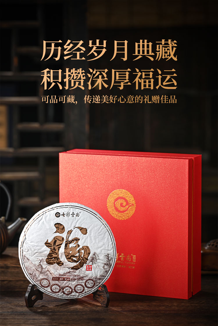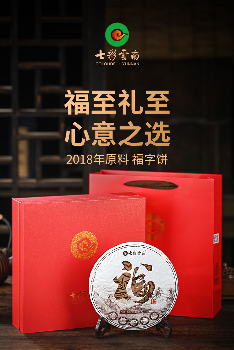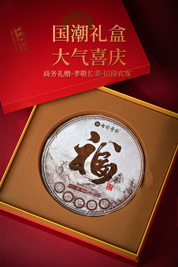 七彩云南 普洱茶 2018福字饼-金 357g 红色(单位:盒)