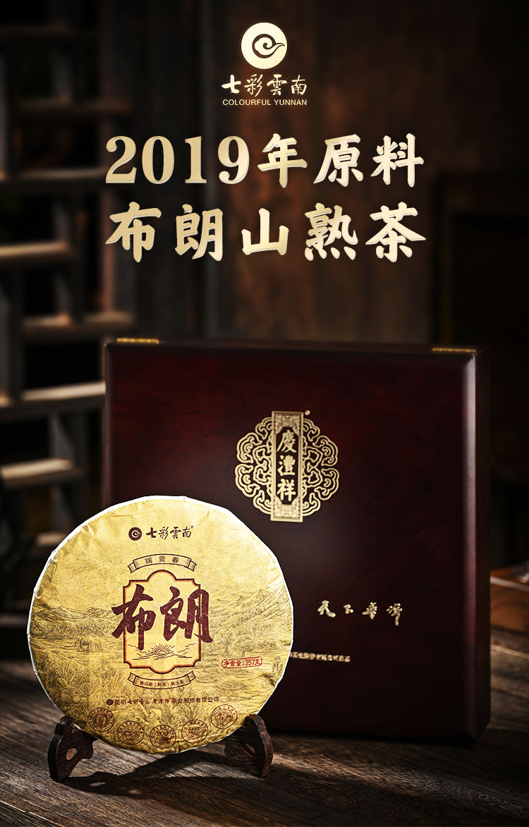 七彩云南 普洱茶 2019布朗贡熟茶 357g 棕色(单位:盒)