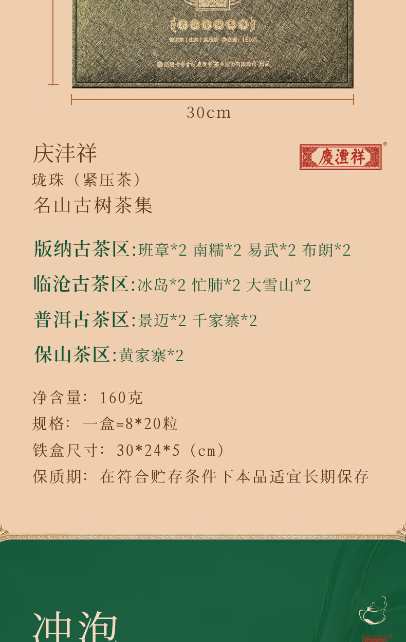 七彩云南 普洱茶 名山古树茶集 160g 卡其色(单位:盒)