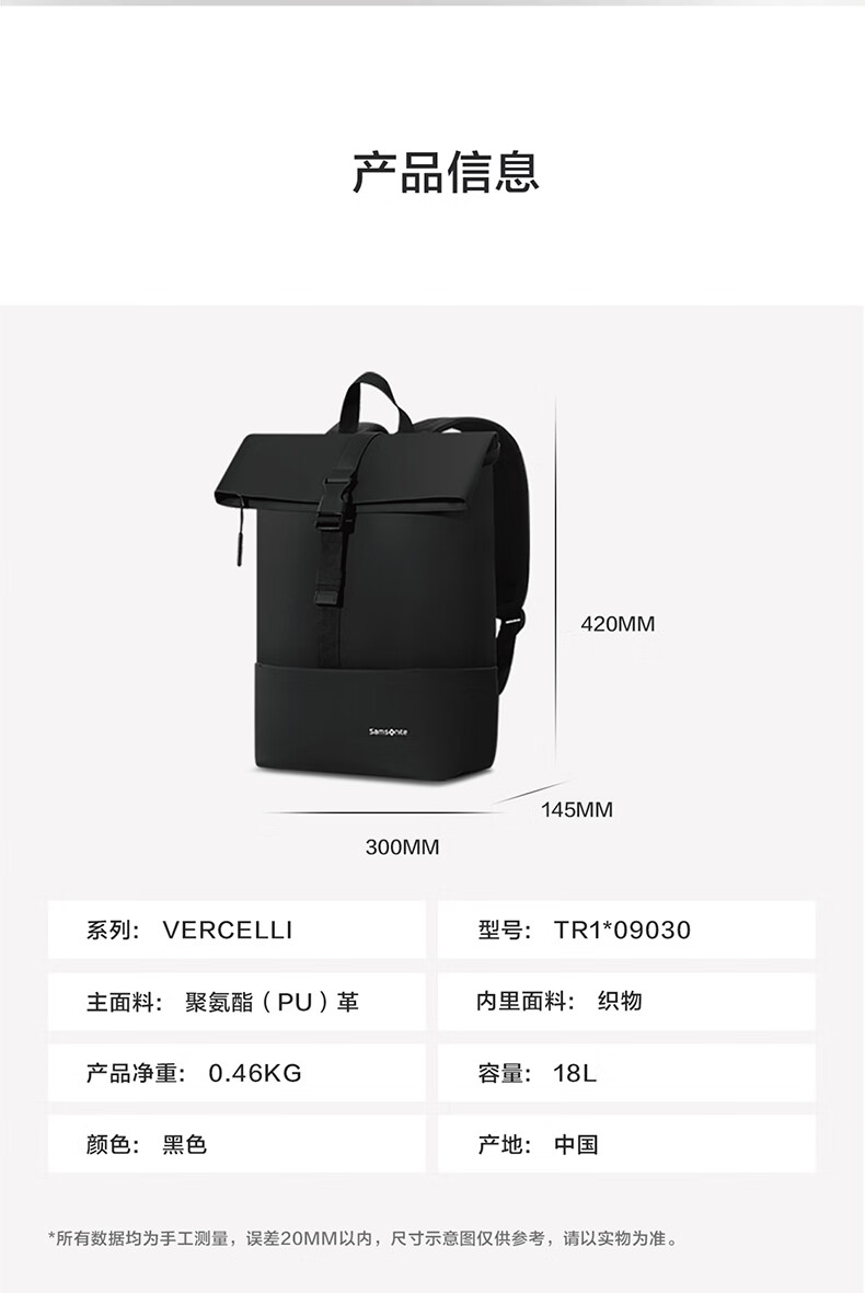 新秀丽(Samsonite) 双肩包 TR1*09030 18L 黑色(单位:个)