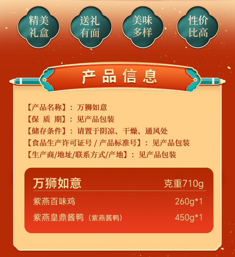 紫燕 熟食礼盒 万狮如意(2026款) 710g 红色(单位:盒)