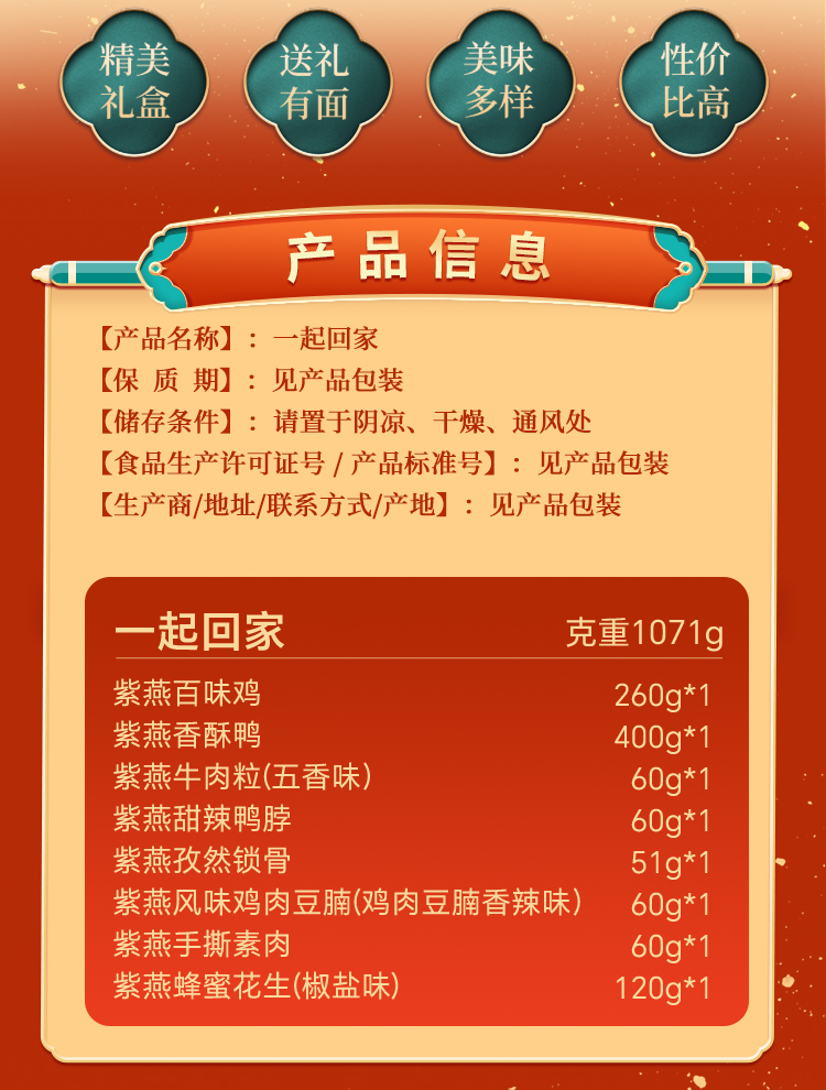 紫燕 熟食礼盒 一起回家(2026款) 1071g 红色(单位:盒)