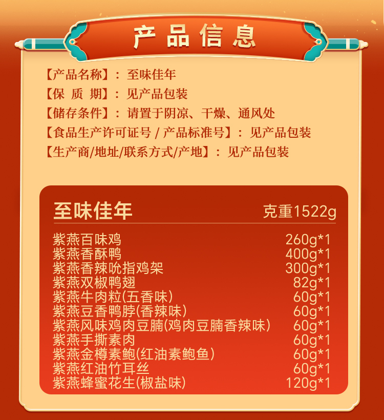 紫燕 熟食礼盒 至味佳年(2026款) 1522g 灰橙色(单位:盒)