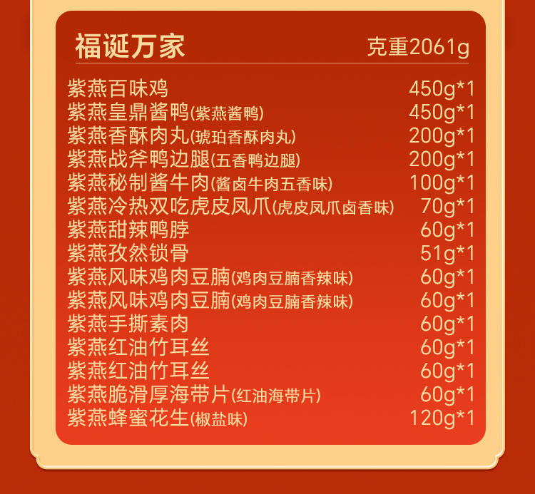 紫燕 熟食礼盒 福诞万家(2026款) 2061g 灰橙色(单位:盒)