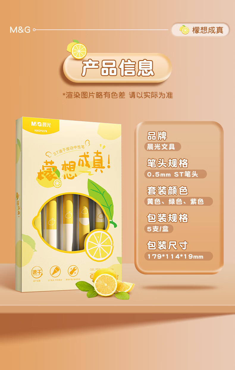 晨光(M&G) 按动中性笔檬想成真 HAGP2370G 0.5mm 5支/盒 黑色(单位:套)