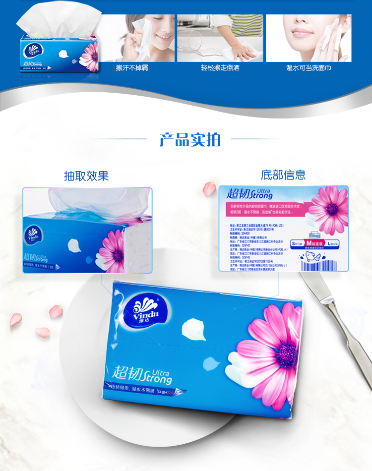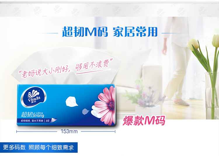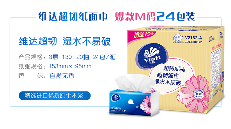 维达(Vinda) 抽纸 超韧3层150抽*24包软抽 纸巾(认准真M码) 整箱销售 母婴可用 抽取式面巾纸 蓝色