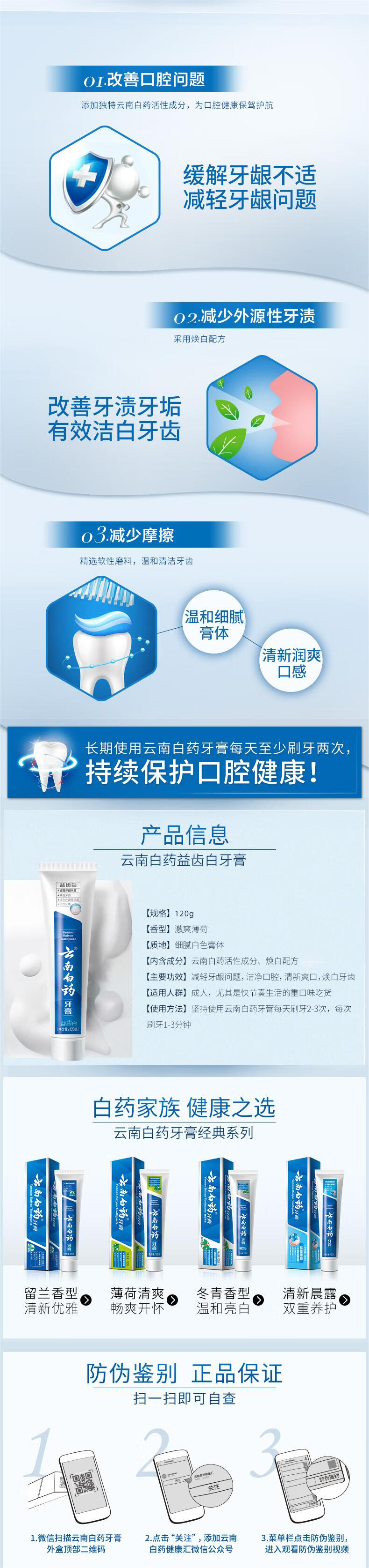 云南白药(YUNNANBAIYAO) 激爽薄荷 120gX3支 清新空气益齿白牙膏 白色(单位:套)