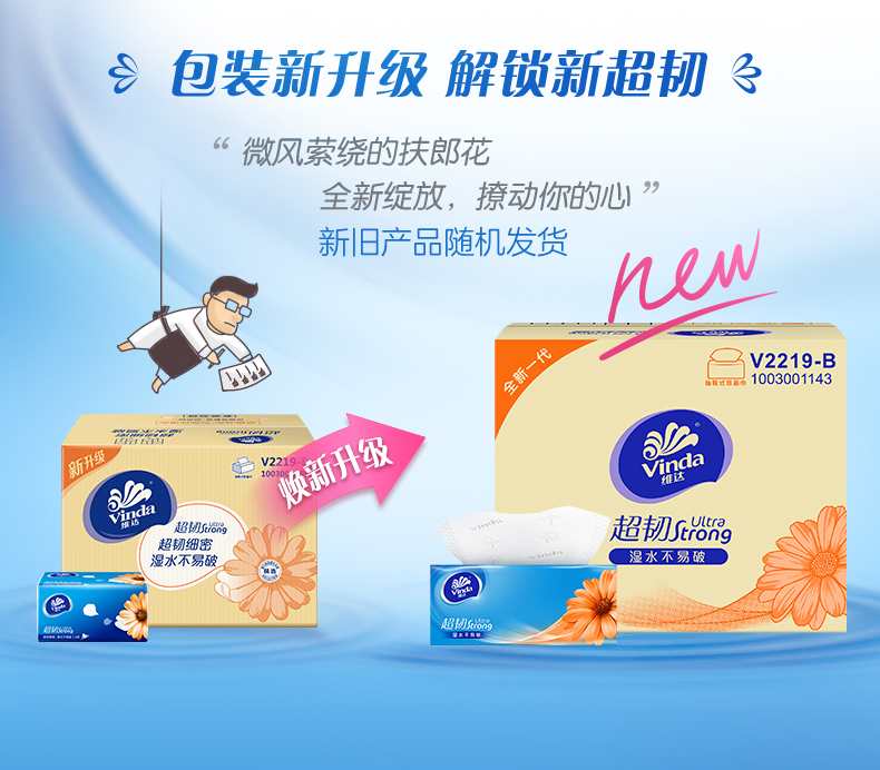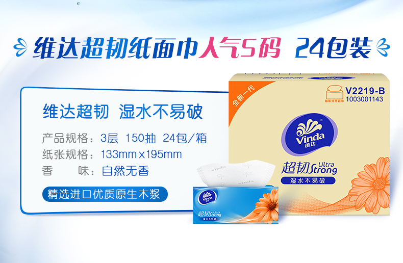 维达超韧抽纸巾3层150抽24包S码整箱装V2219-24E 蓝色