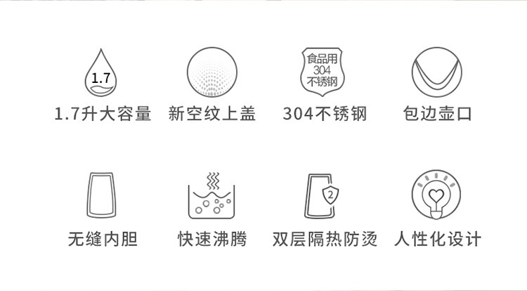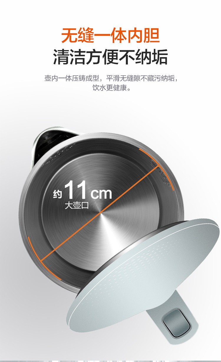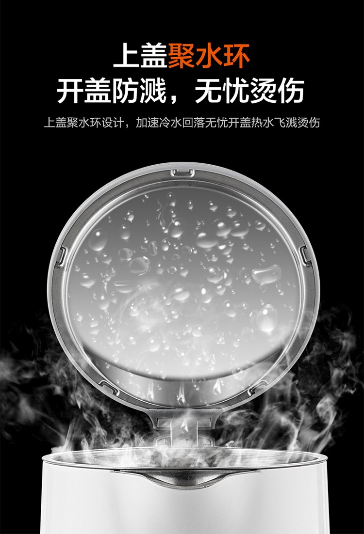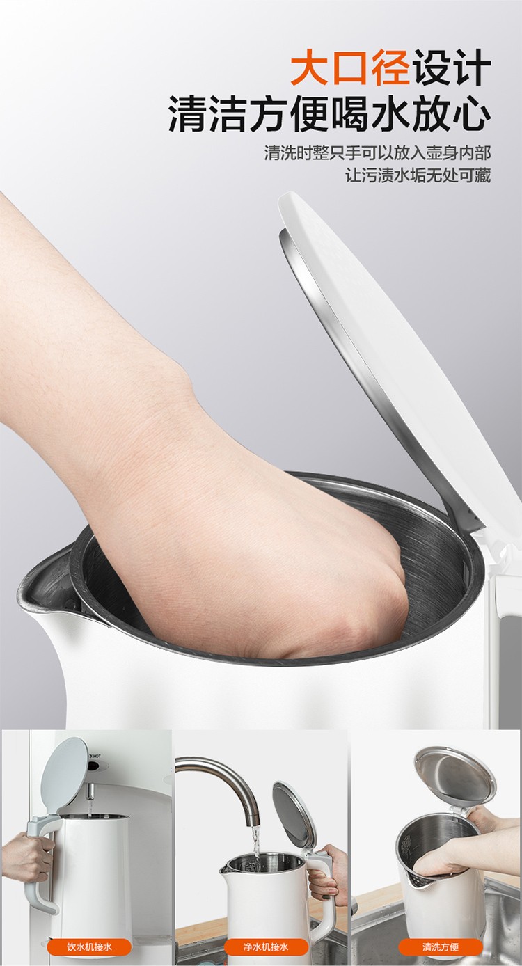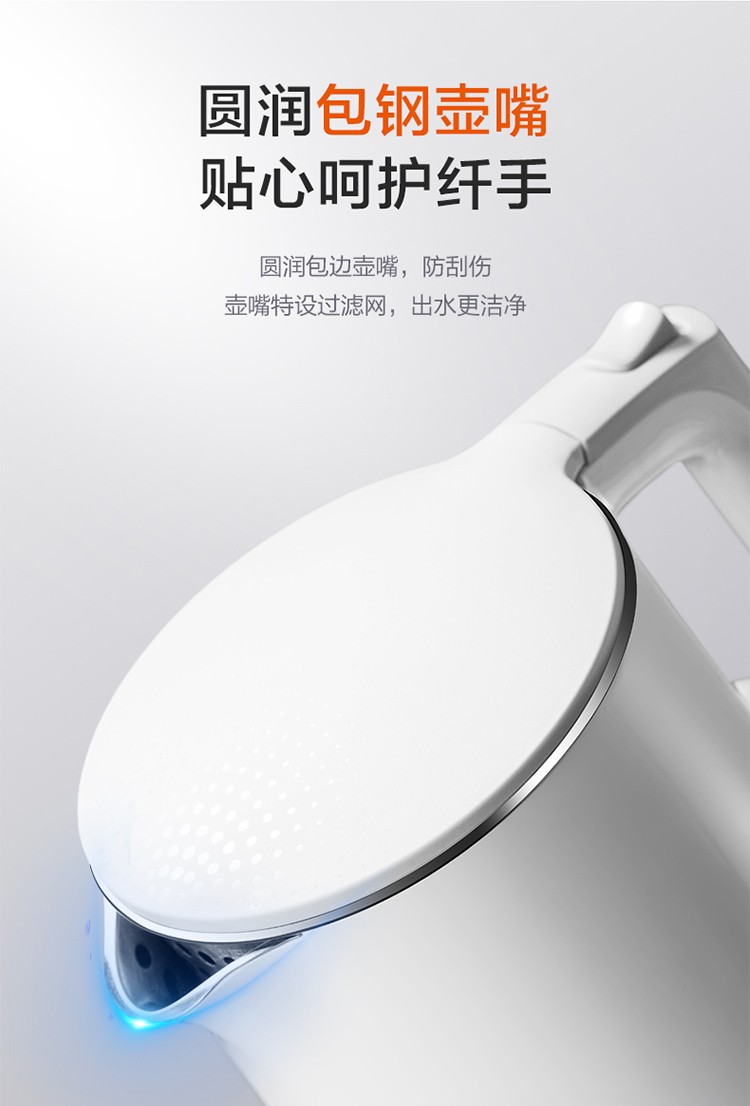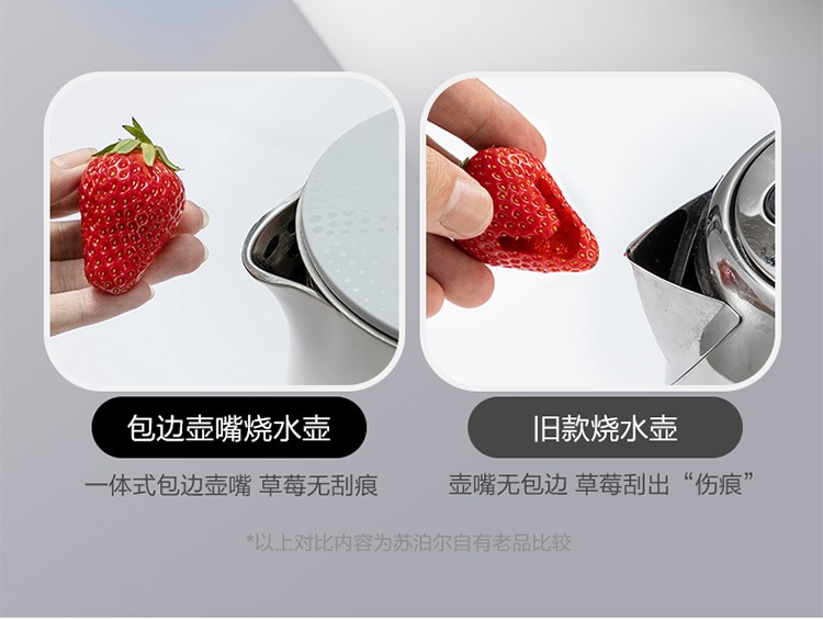 苏泊尔(SUPOR)电水壶1.7升烧水壶 304不锈钢一体无缝内胆双层保温防烫SW-17T12C 台 白色