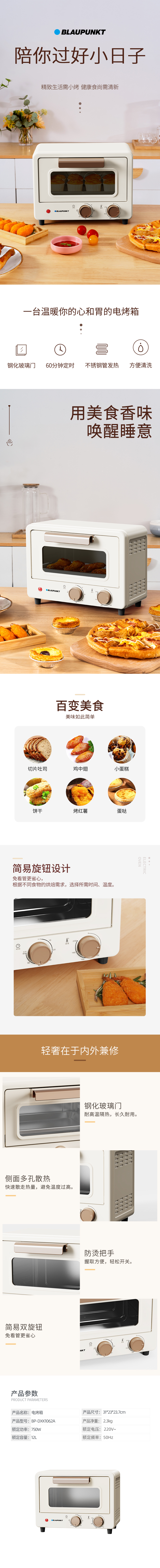 蓝宝(BLAUPUNKT) BP-DXK1062A 12L 电烤箱 米色(单位:台)