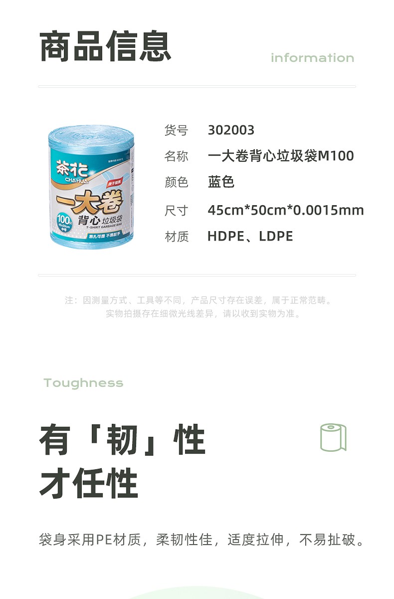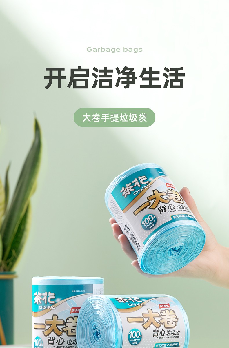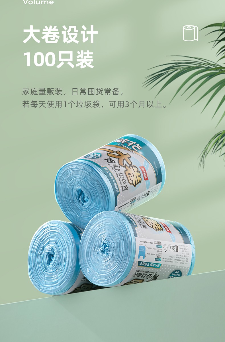 茶花一大卷背心垃圾袋M100(单位:包) 混色