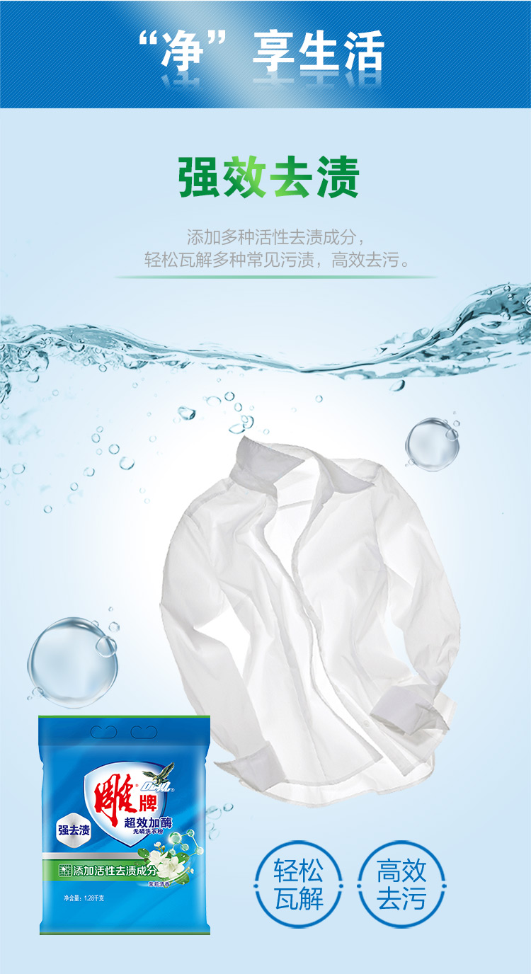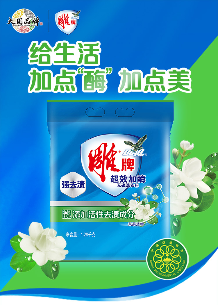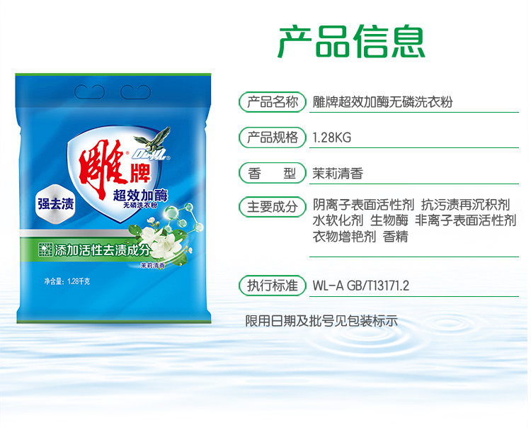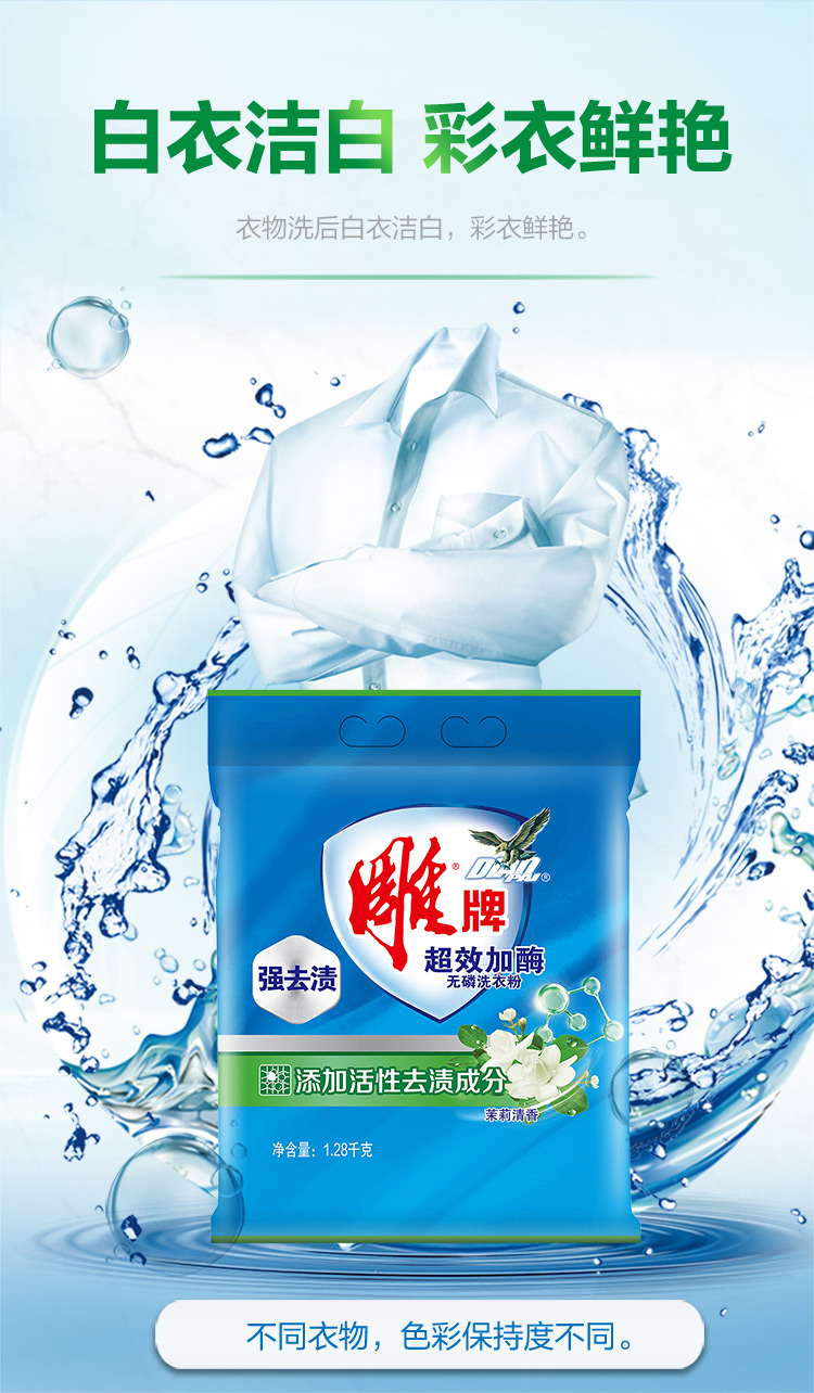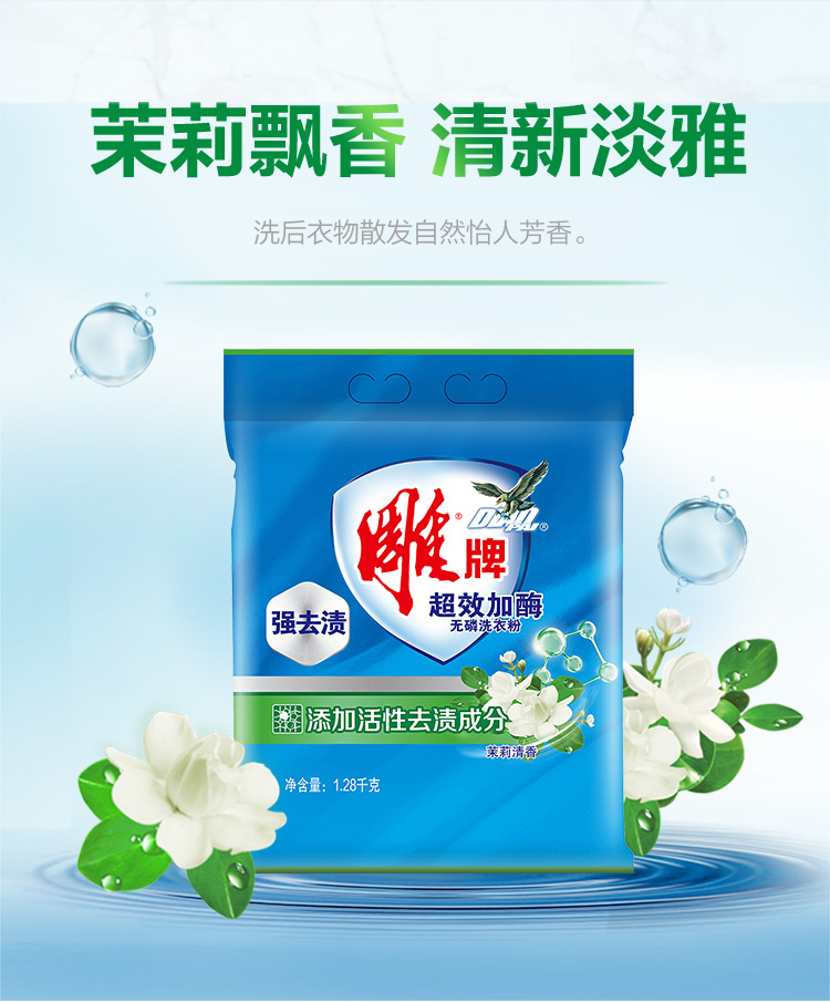 雕牌 超效加酶无磷洗衣粉 1.28kg 茉莉清香 蓝色