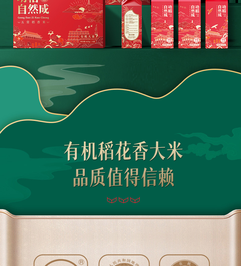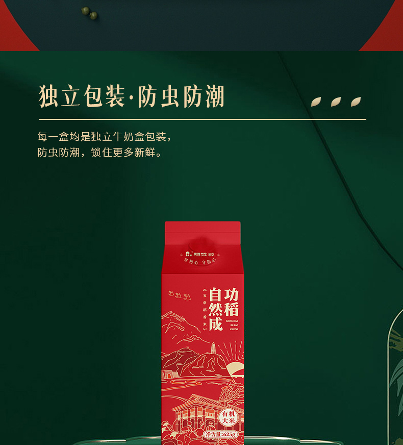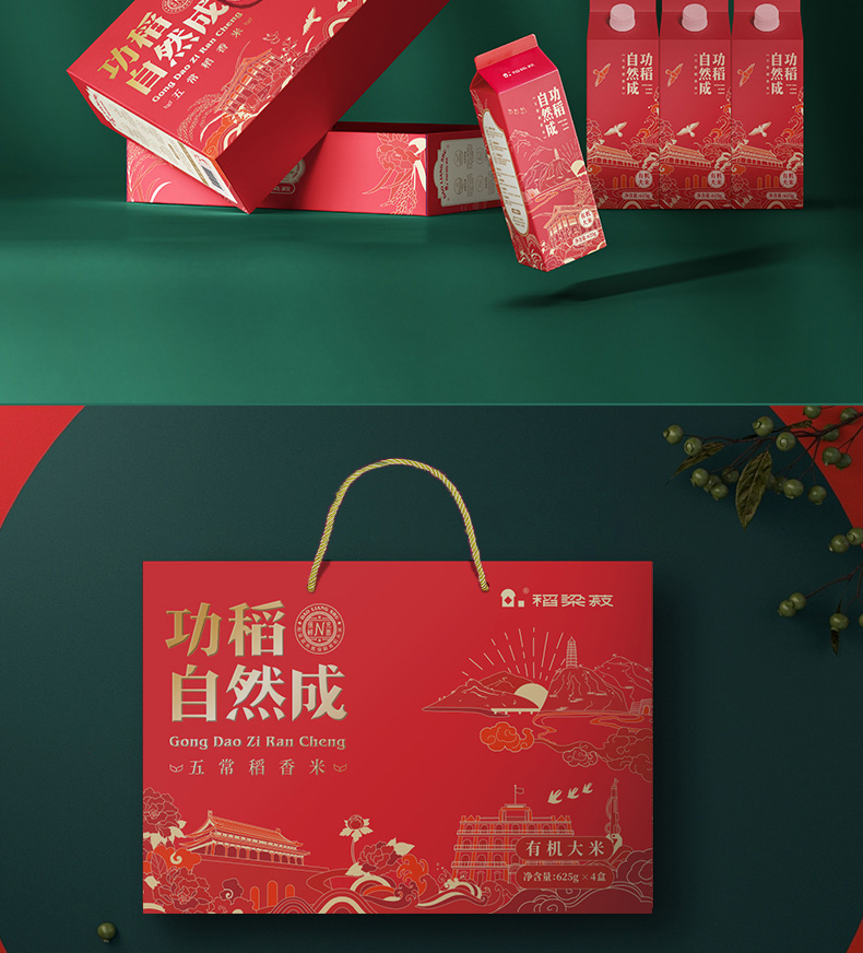稻梁菽 DLS007 五常有机稻花香大米功稻自然成2.5kg 米粒饱满,产地直发 红色(单位:套)