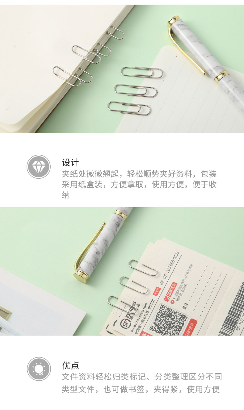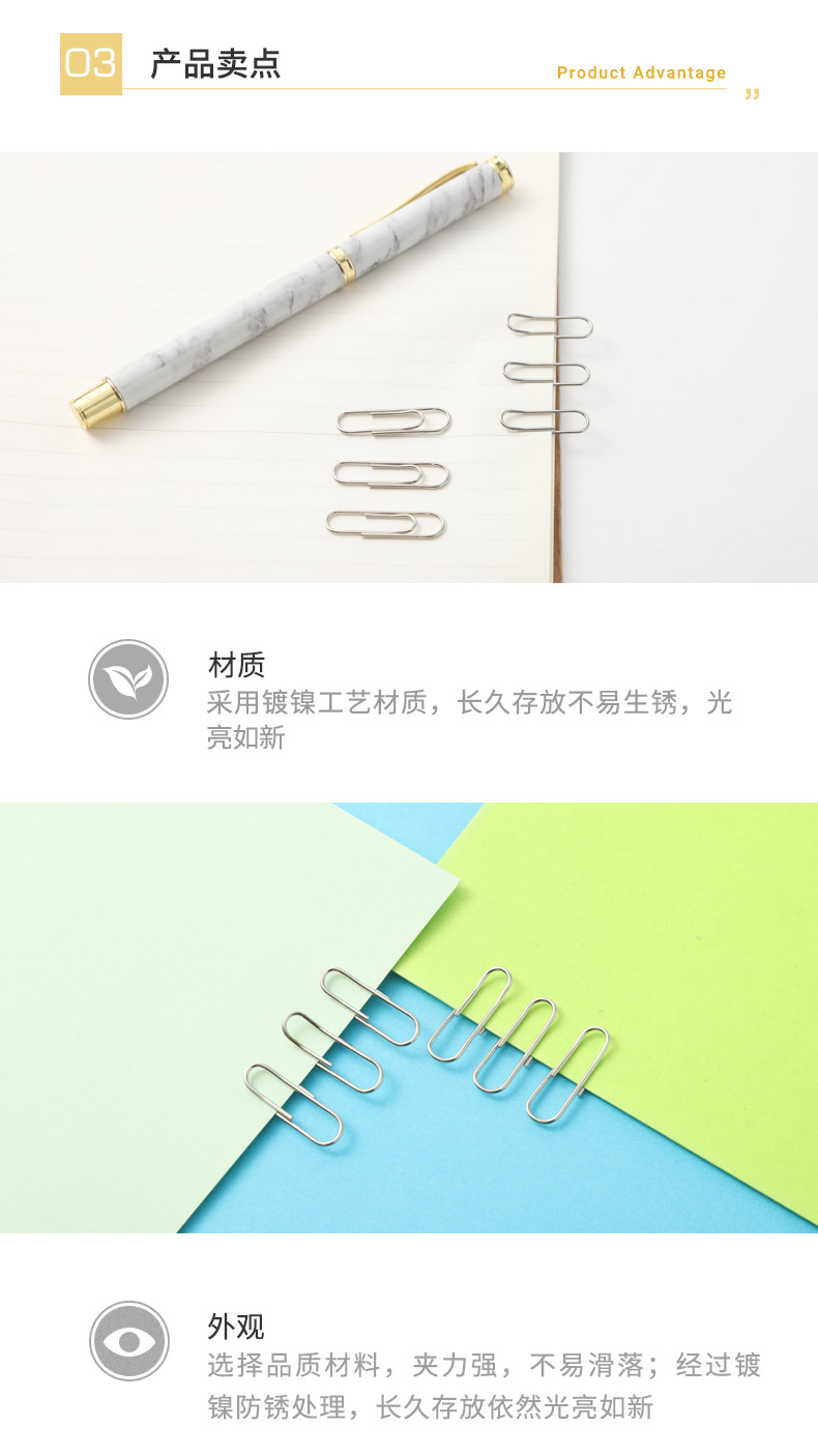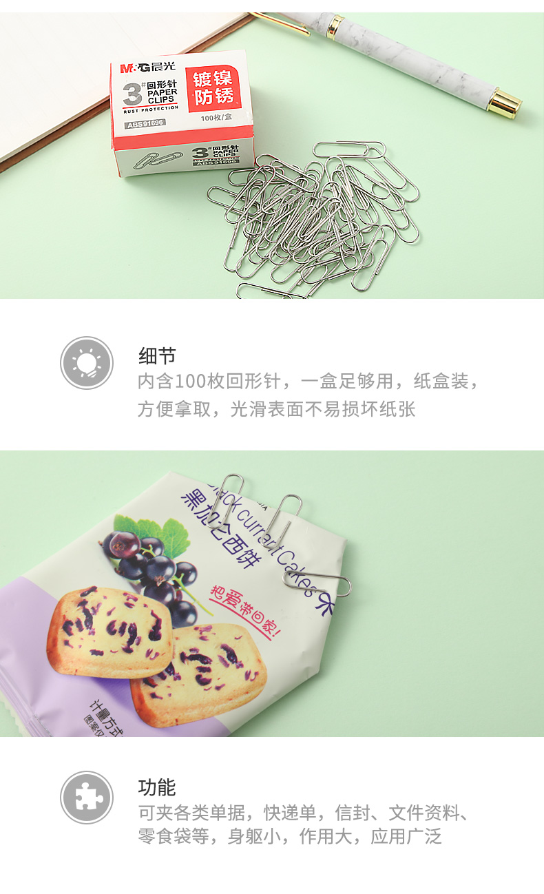 晨光(M&G)ABS91696文具3#镀镍防锈盒装回形针 金属曲别针 办公用品 100枚/盒 10盒装 银色