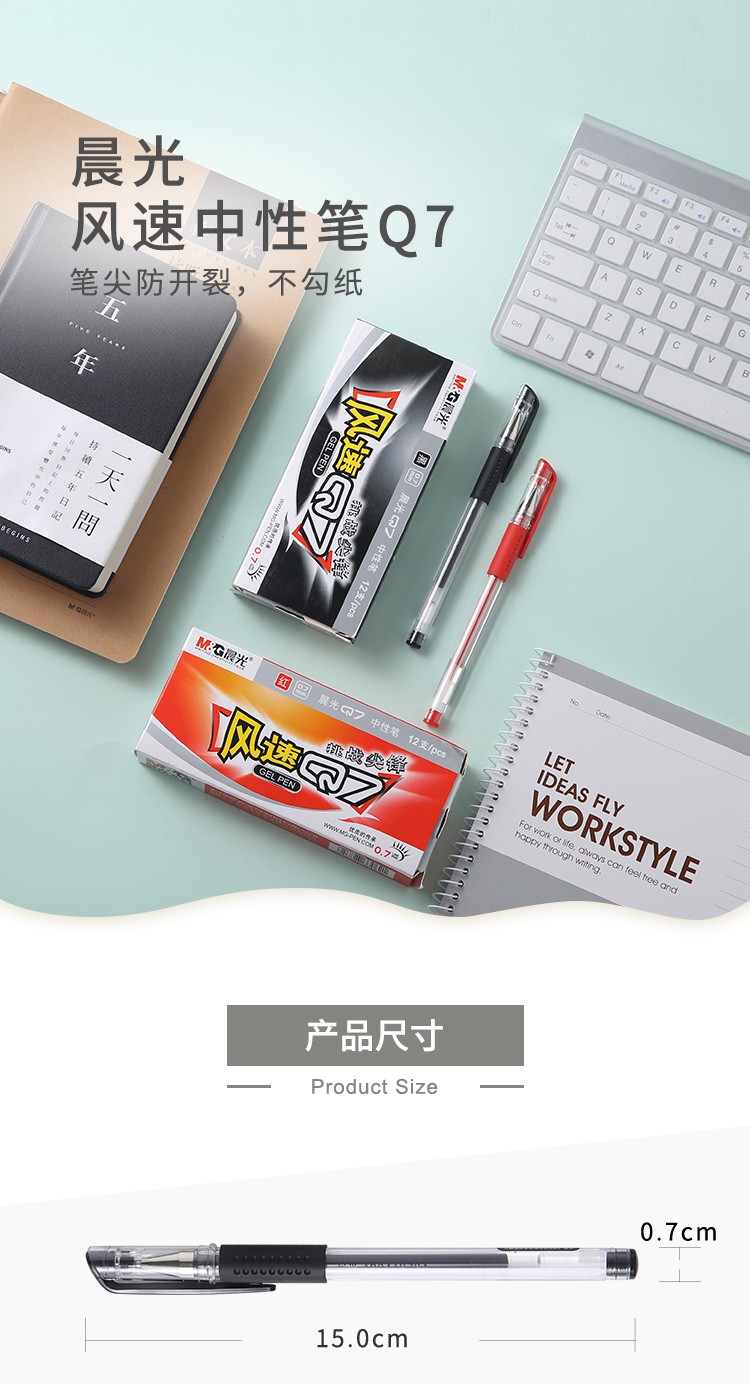 晨光(M&G)风速Q7中性笔签字笔水性笔 AGP30105 子弹头拔帽款 0.7mm 12支装/盒 黑色